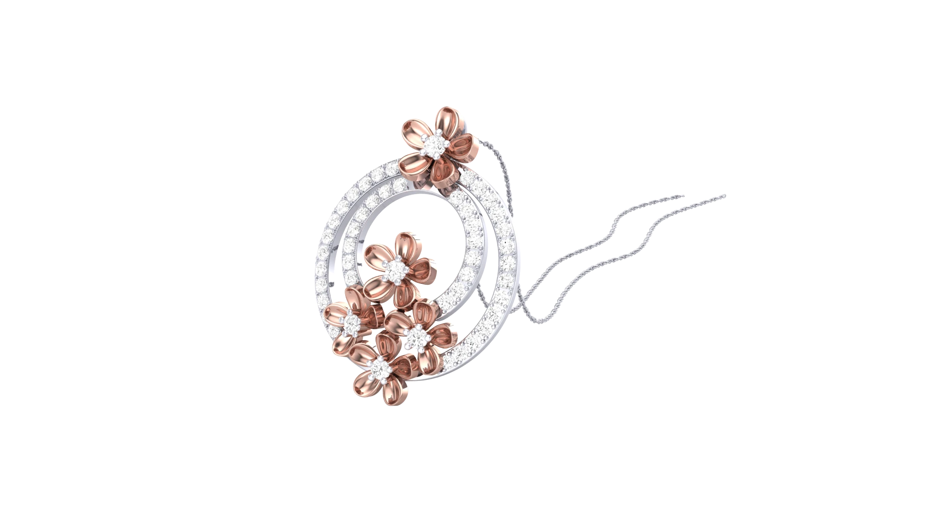 Diamonds rest gently within gold petals, forming a pendant that reflects the beauty of flowers.
