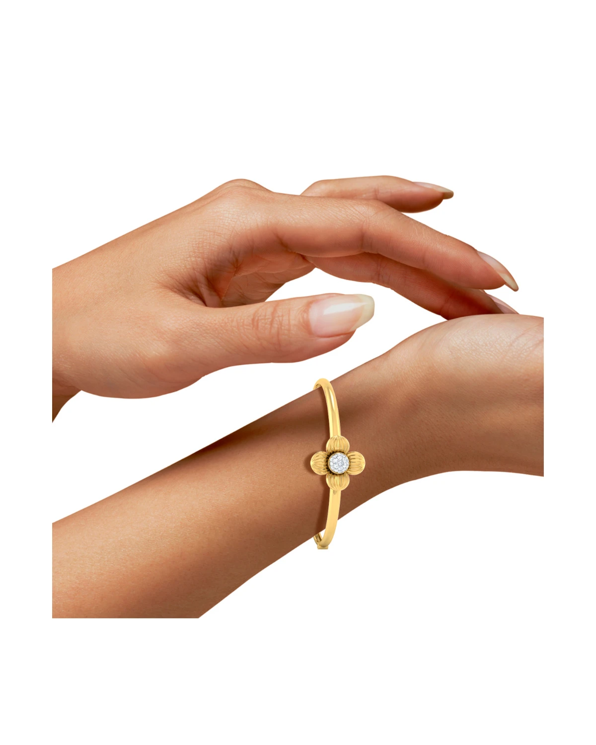 A gold bracelet with diamonds arranged to form a celestial-inspired design that adds a soft, glowing touch.