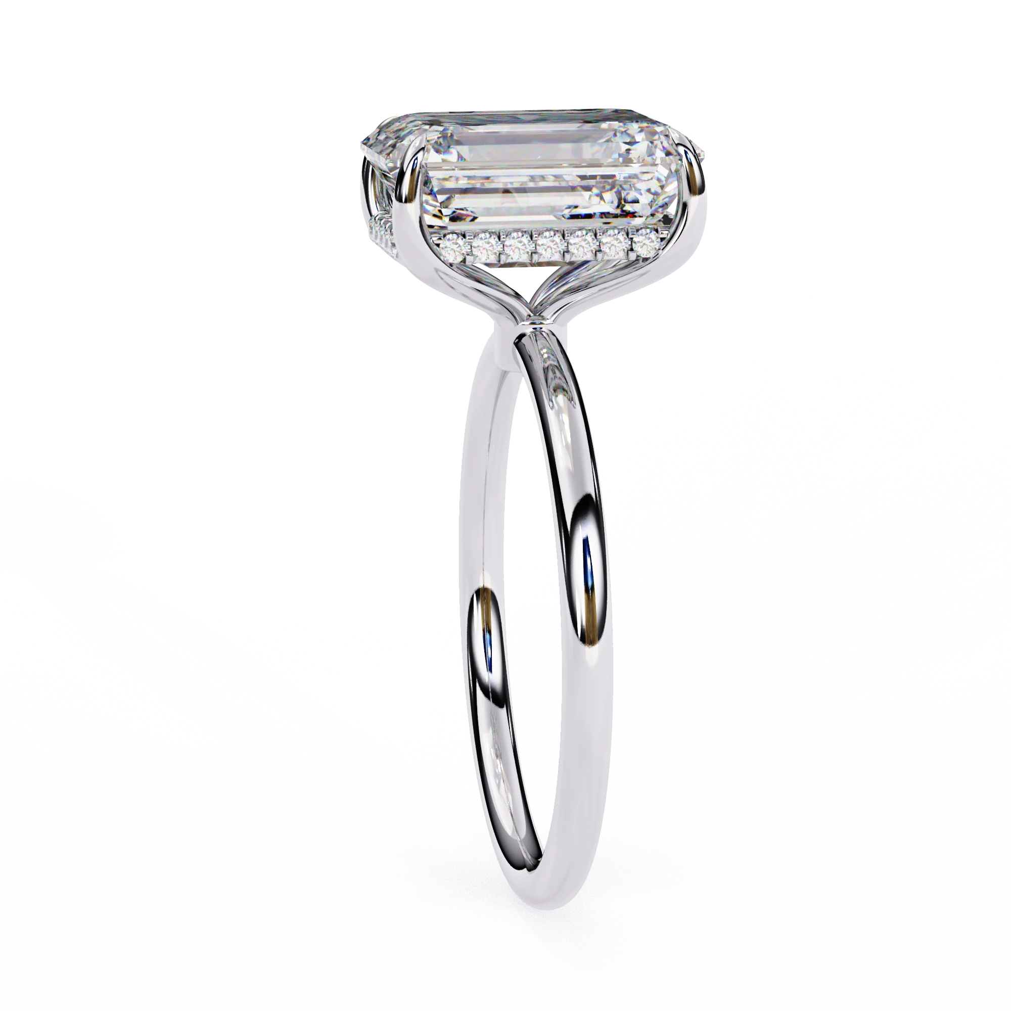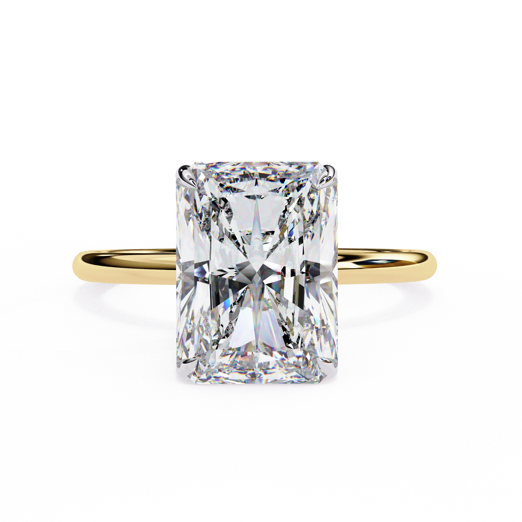 An east-west solitaire ring with a radiant-cut diamond and sleek band.