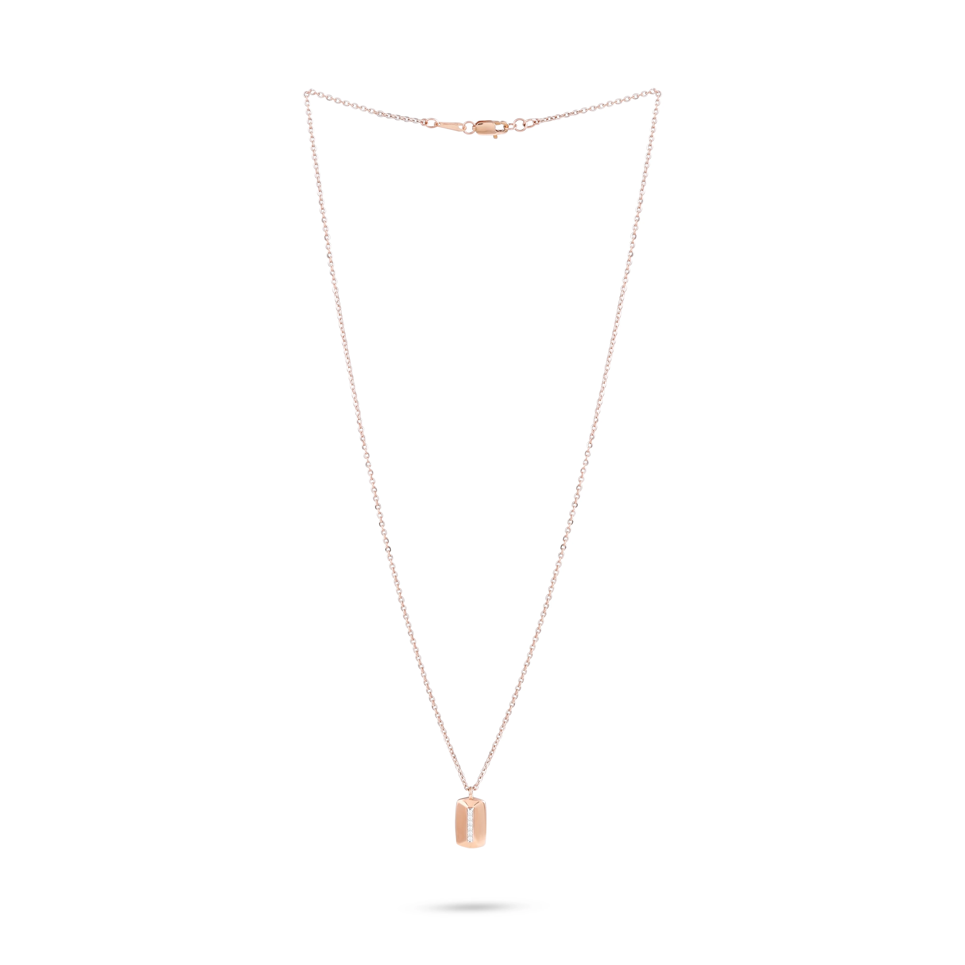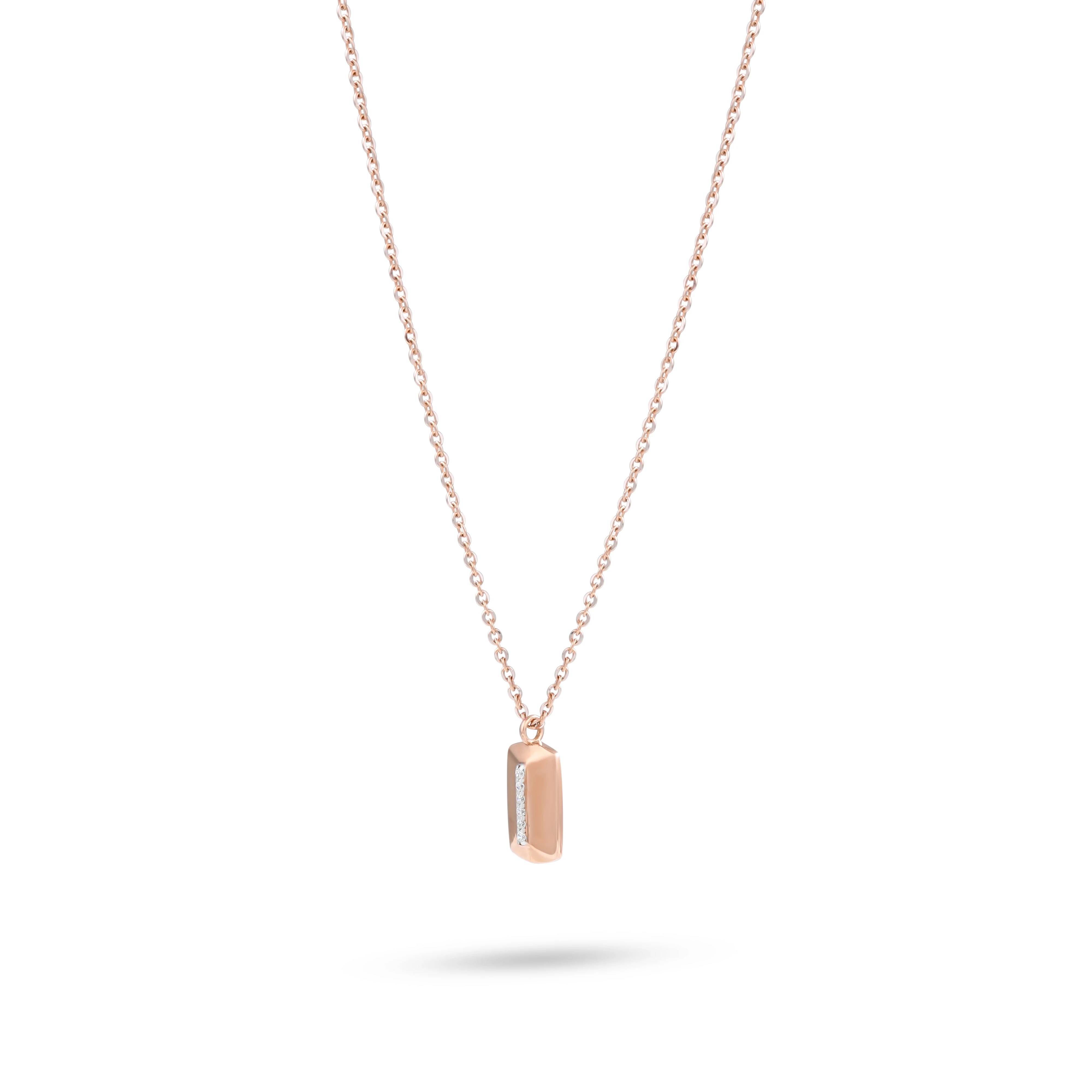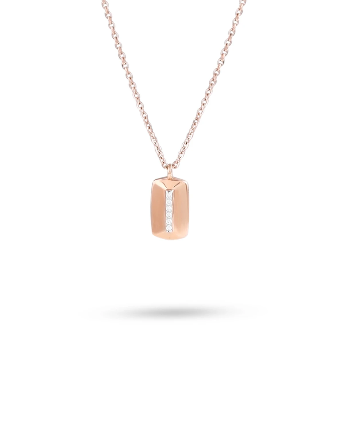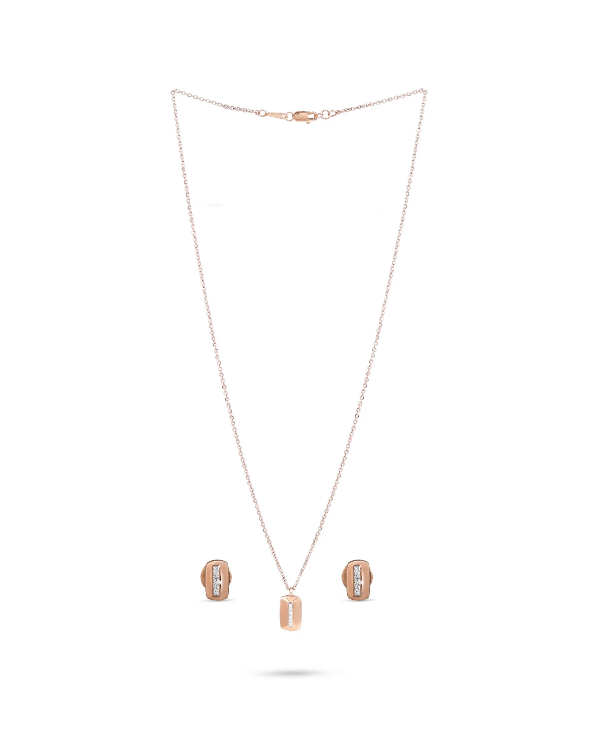 High-shine rose gold pendant with a layered look. Coordinated earrings elevate the glam.