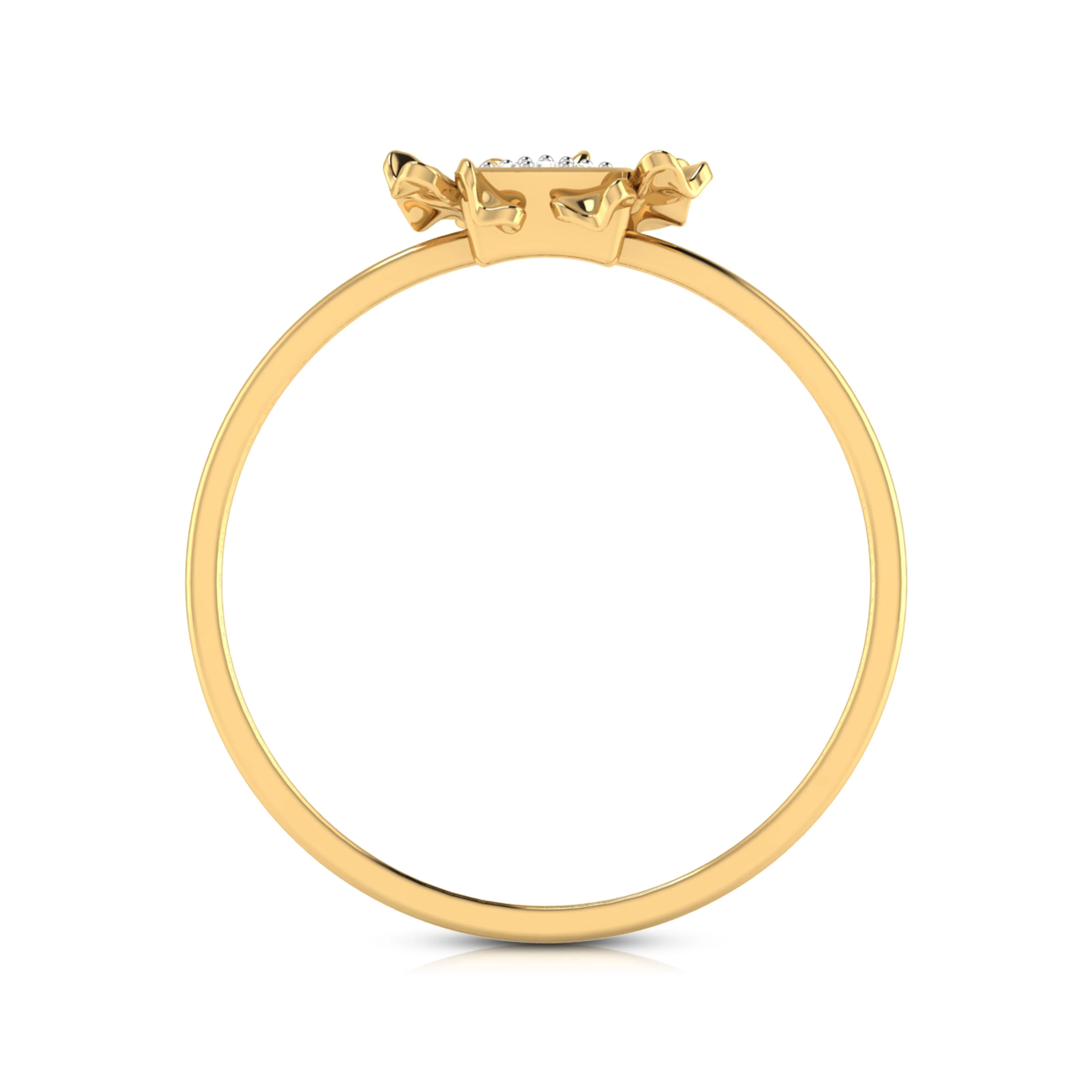 A gold ring surrounded by the gleam of diamonds, giving off a glowing aura of elegance and sophistication.