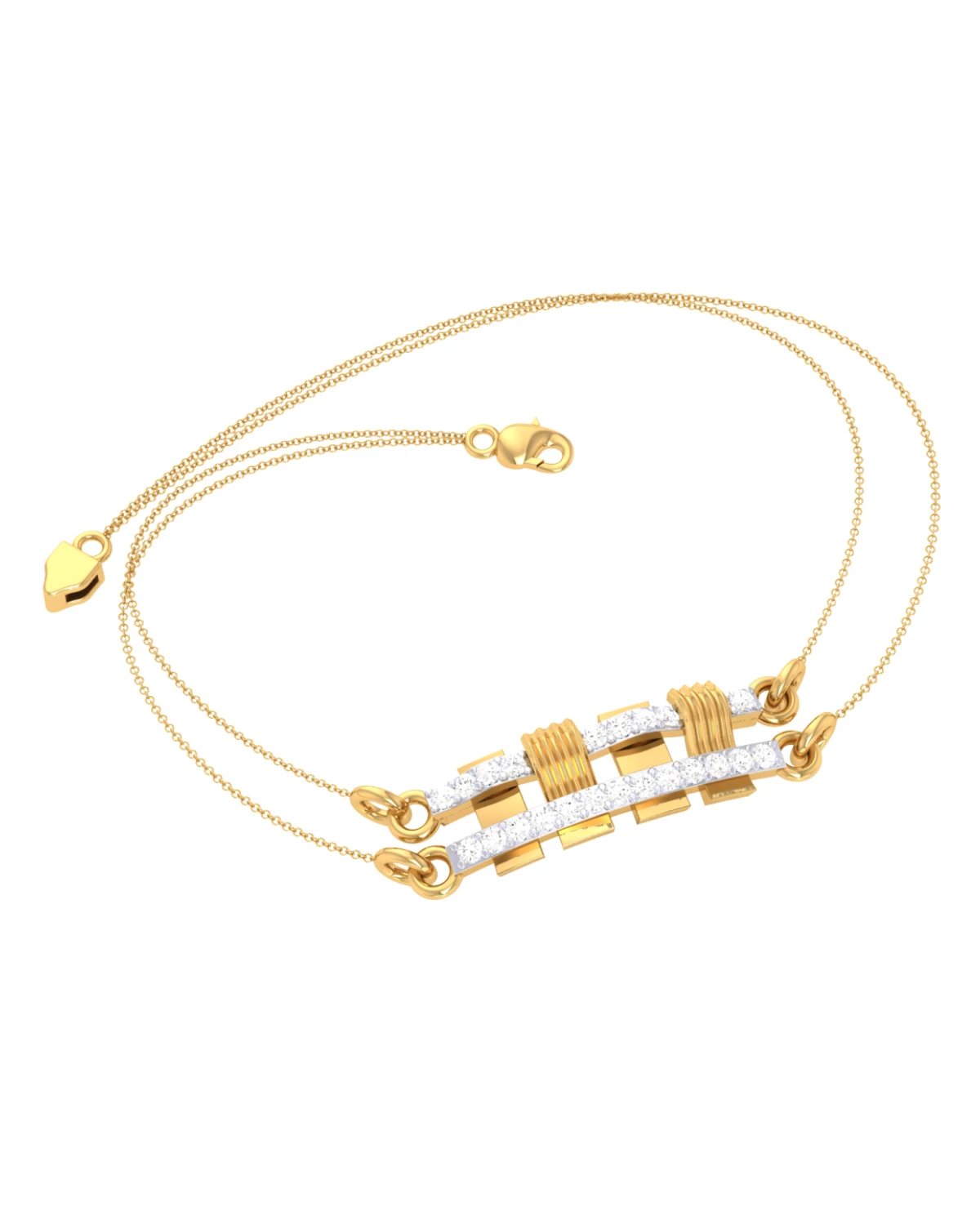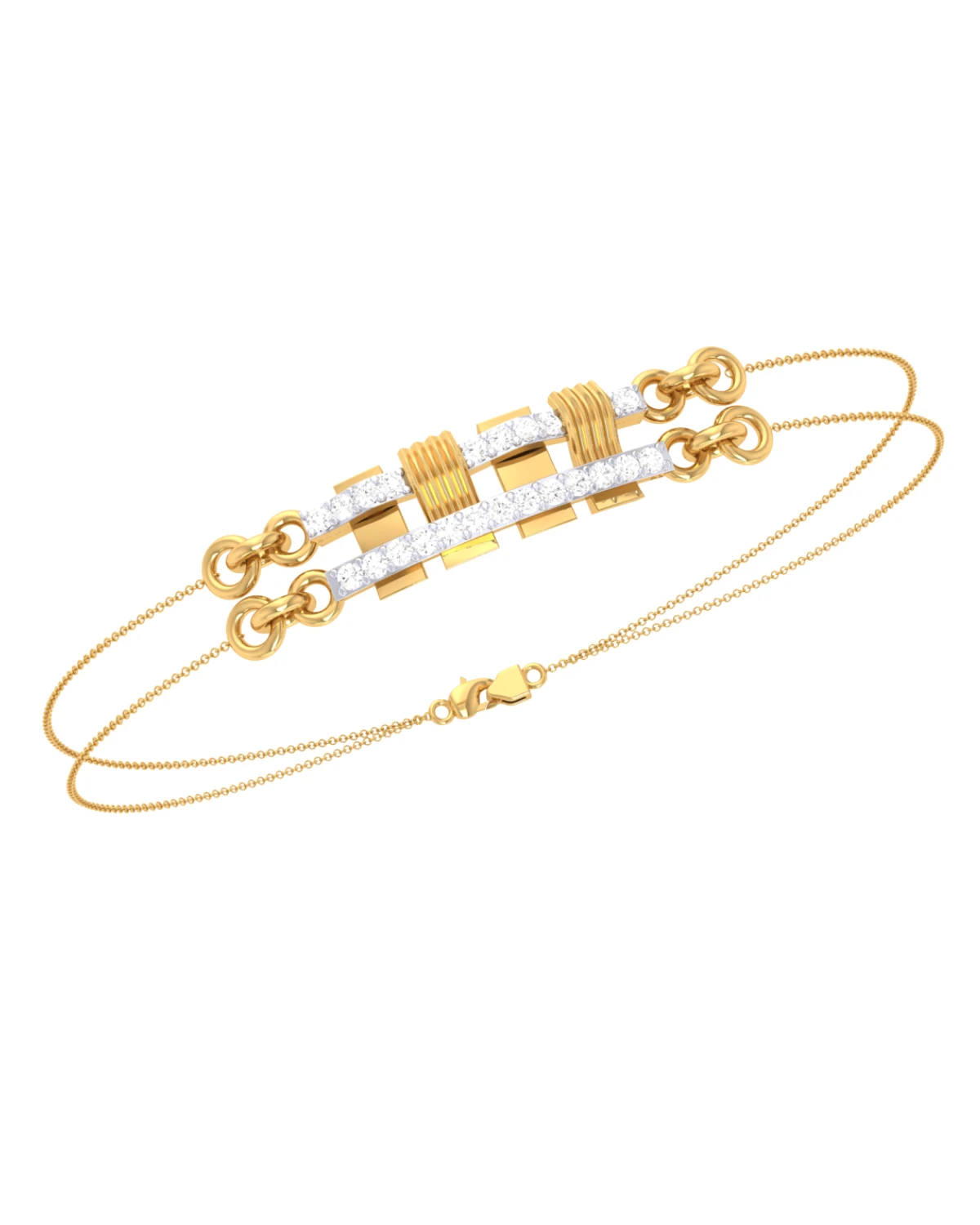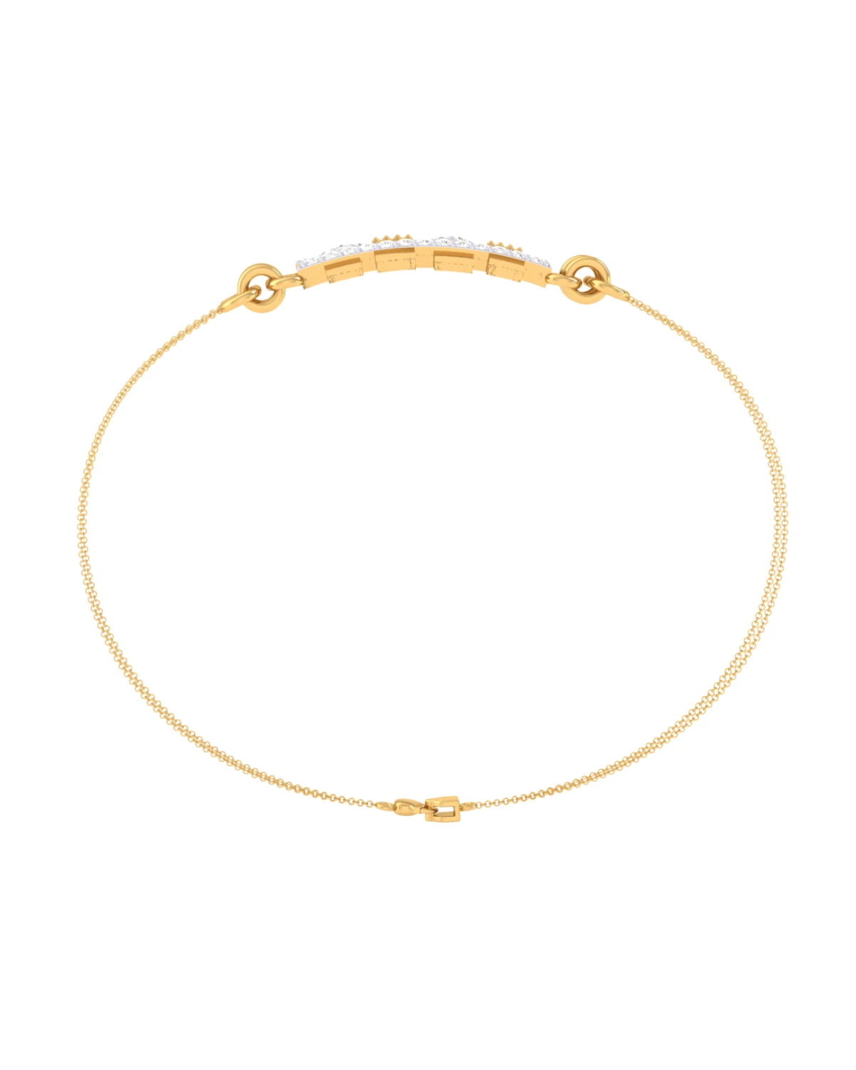 Elegant in design, this gold bracelet with diamonds radiates a balanced and graceful beauty, perfect for both everyday and formal wear.