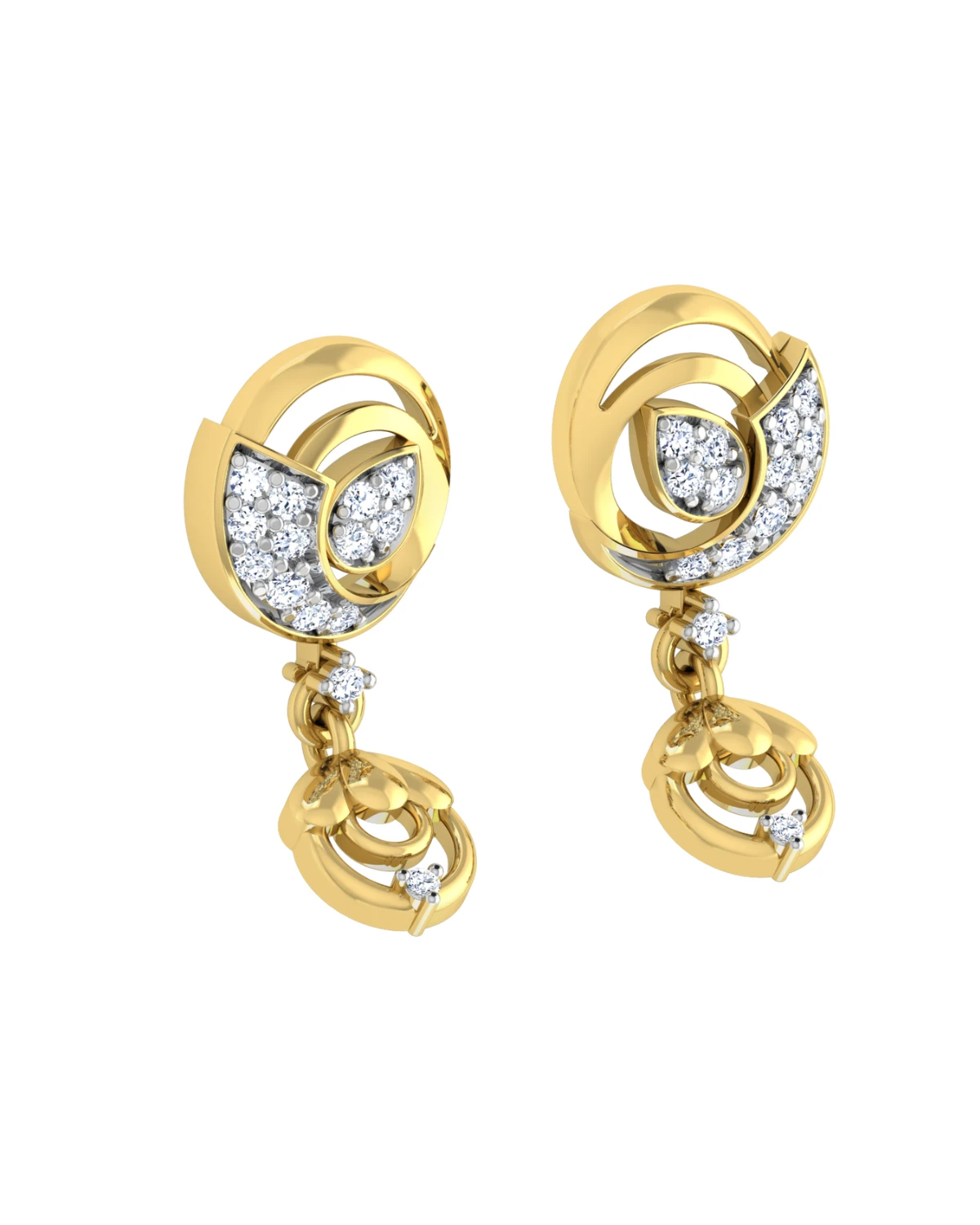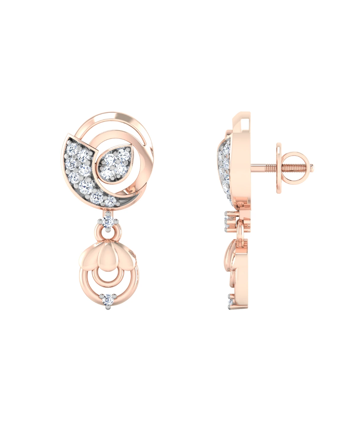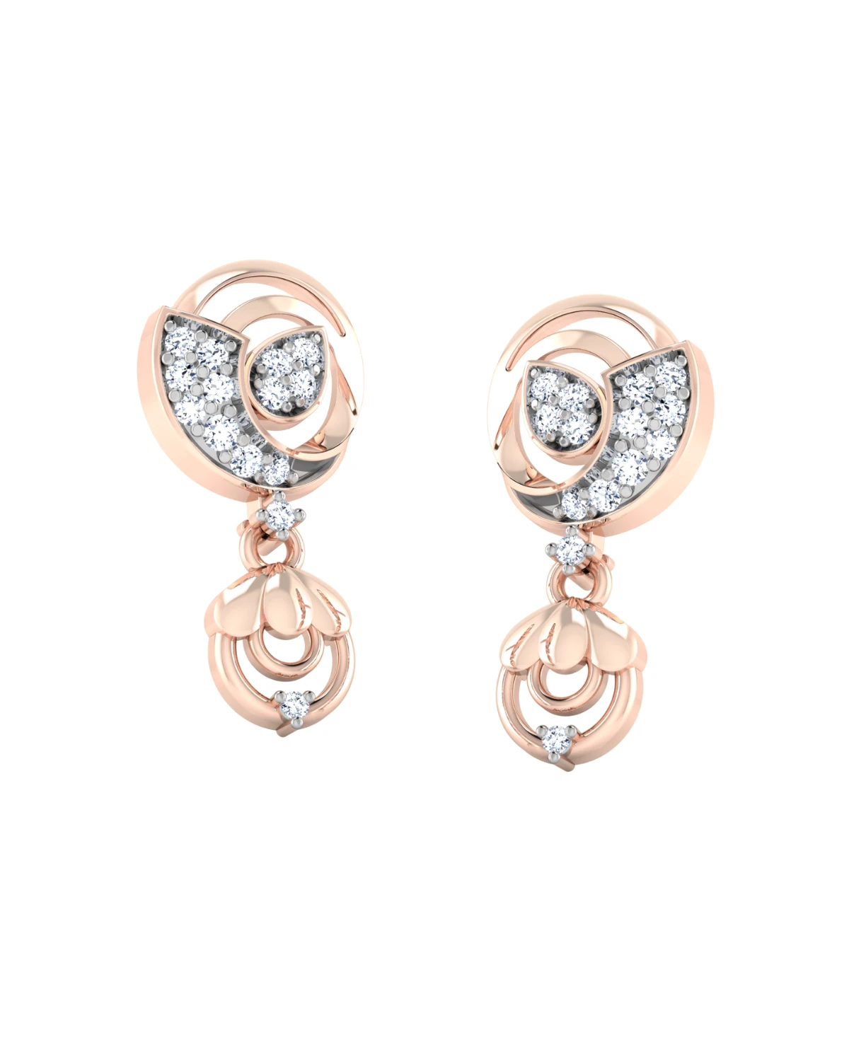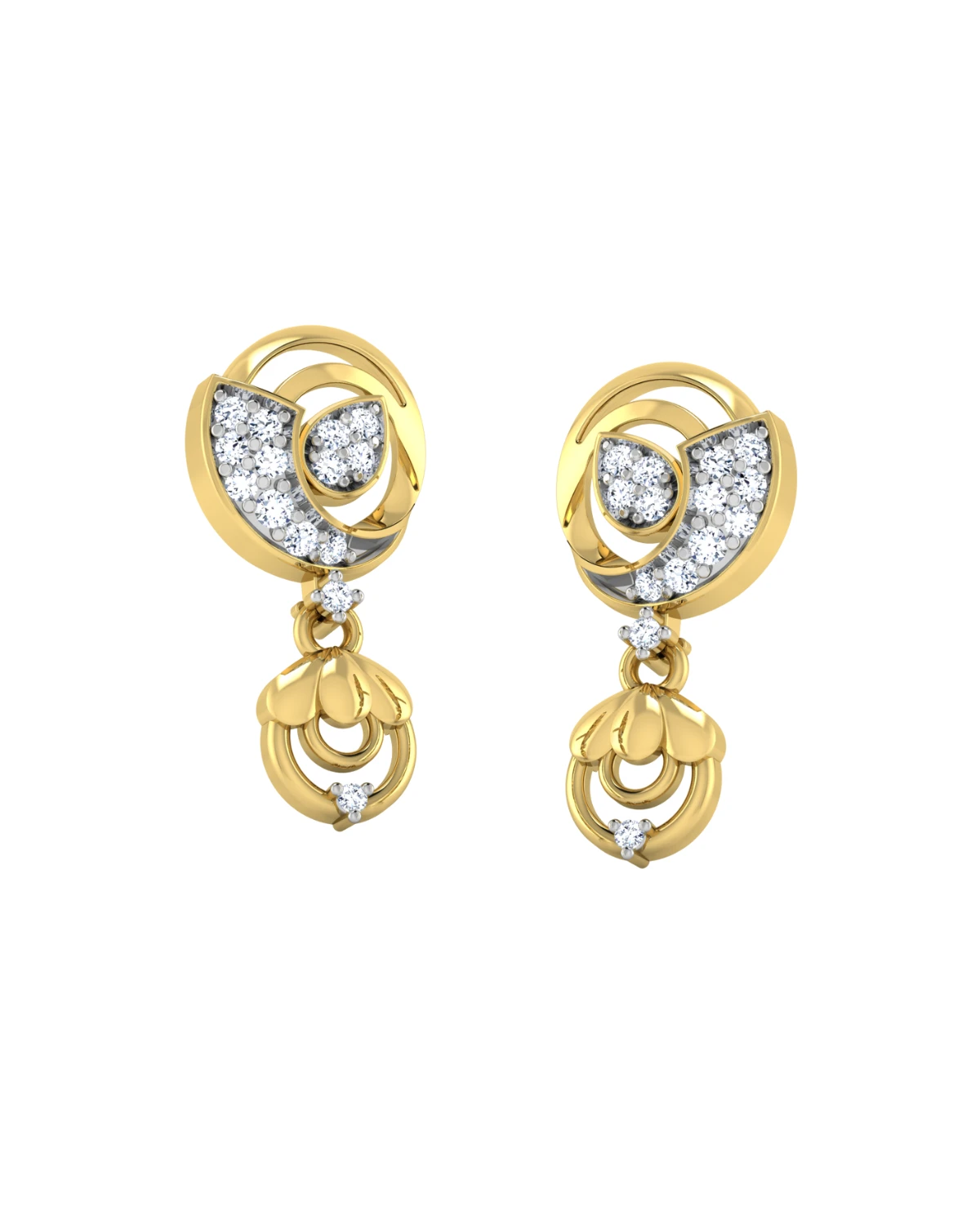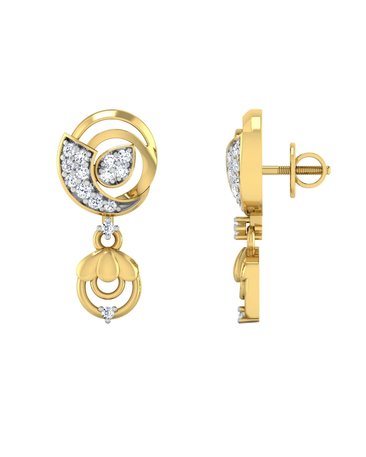 With each detail reflecting the beauty of nature, these gold and diamond studs are a true work of art.