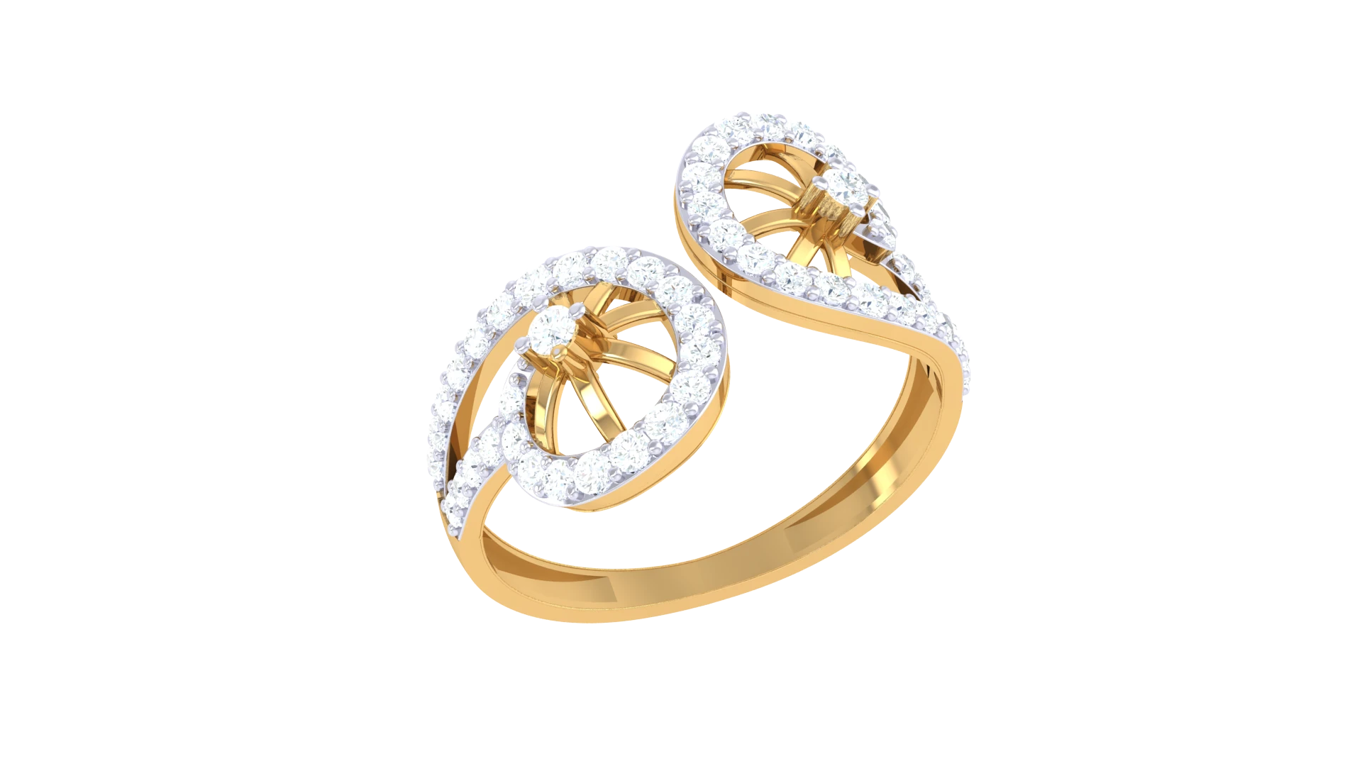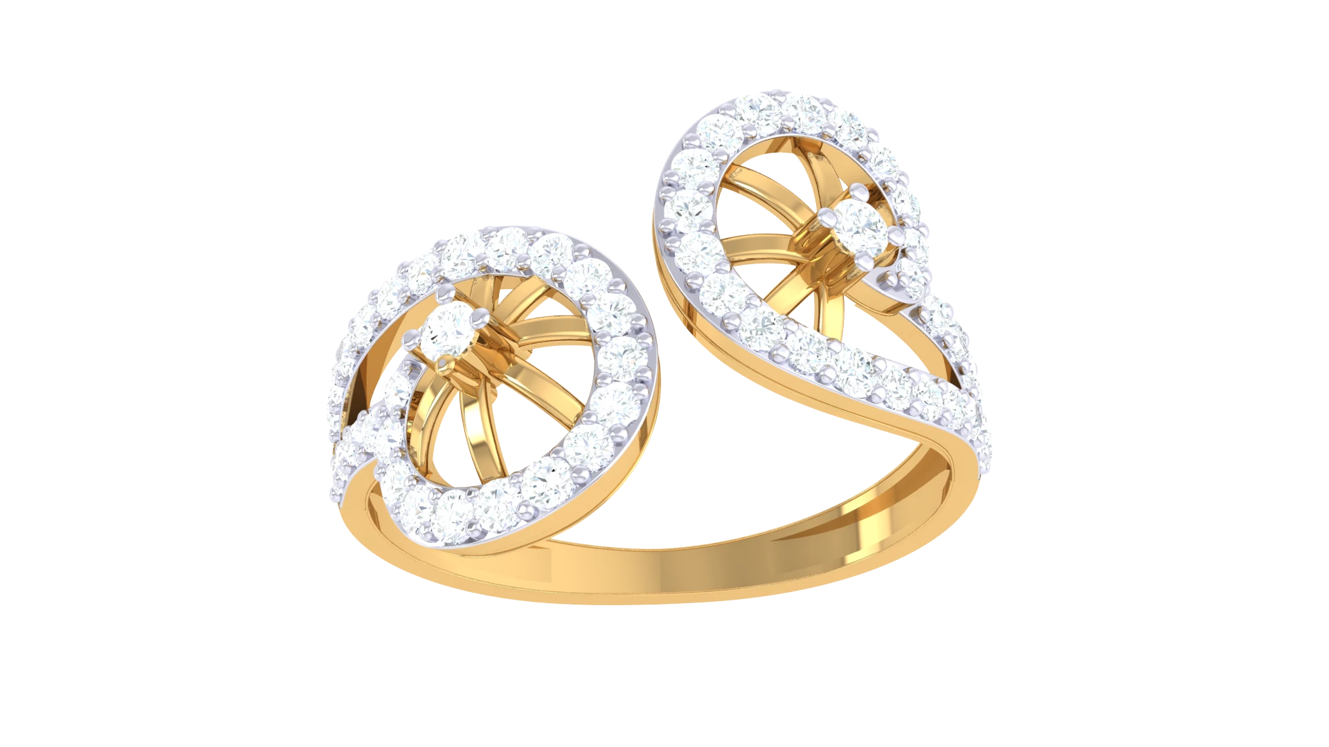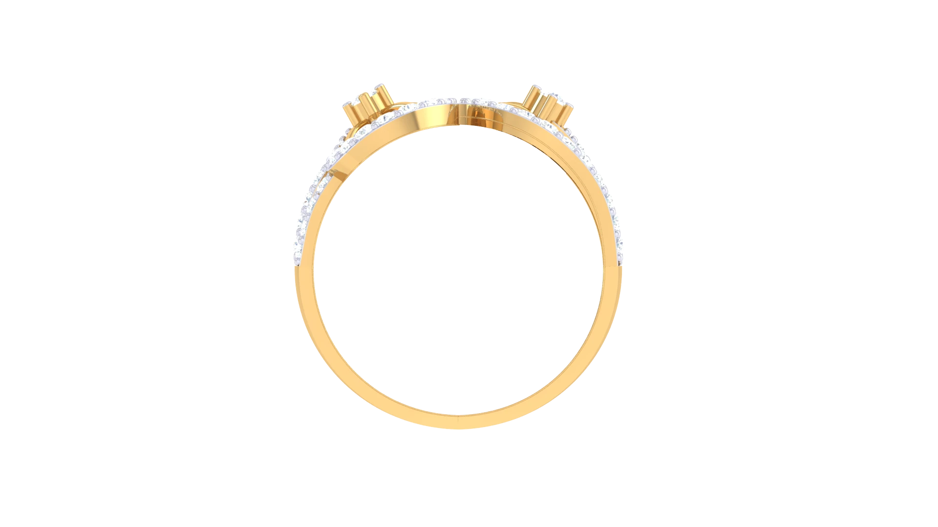 A wide gold Ring with a waterfall of sparkling diamonds.