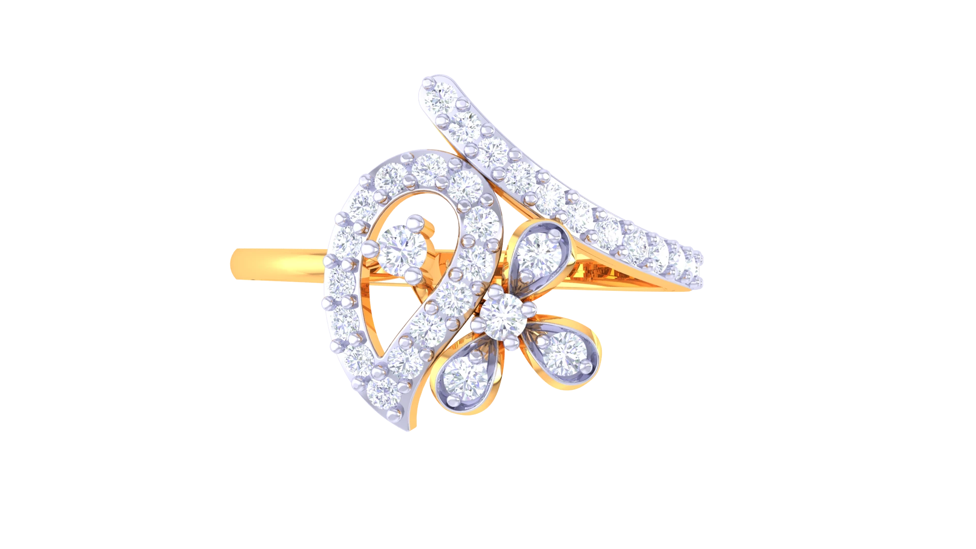 A romantic gold diamond ring with a solitaire diamond set in a floral petal-shaped design, offering charm and elegance.
