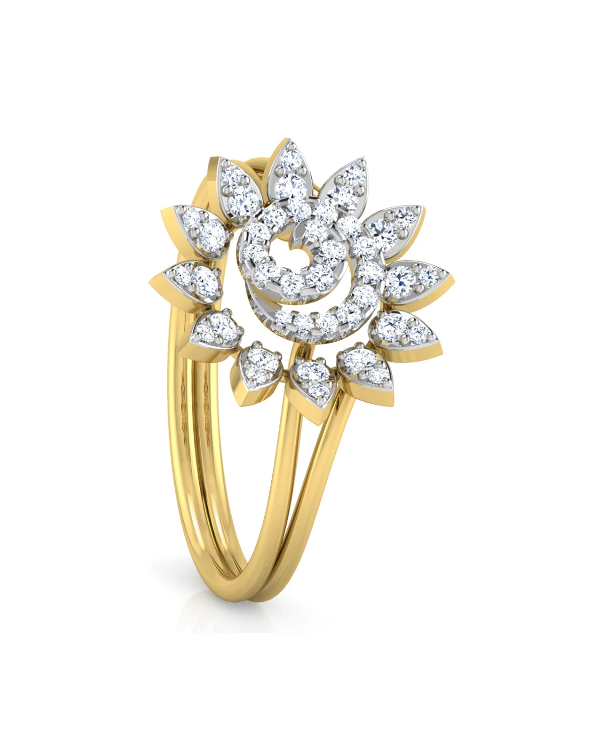 A gold ring with diamonds set in a wave-like pattern, symbolizing the ever-flowing nature of love and the energy it brings.