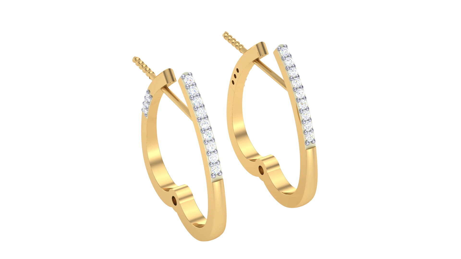 Ripple-textured gold hoops with sparkling diamond highlights.