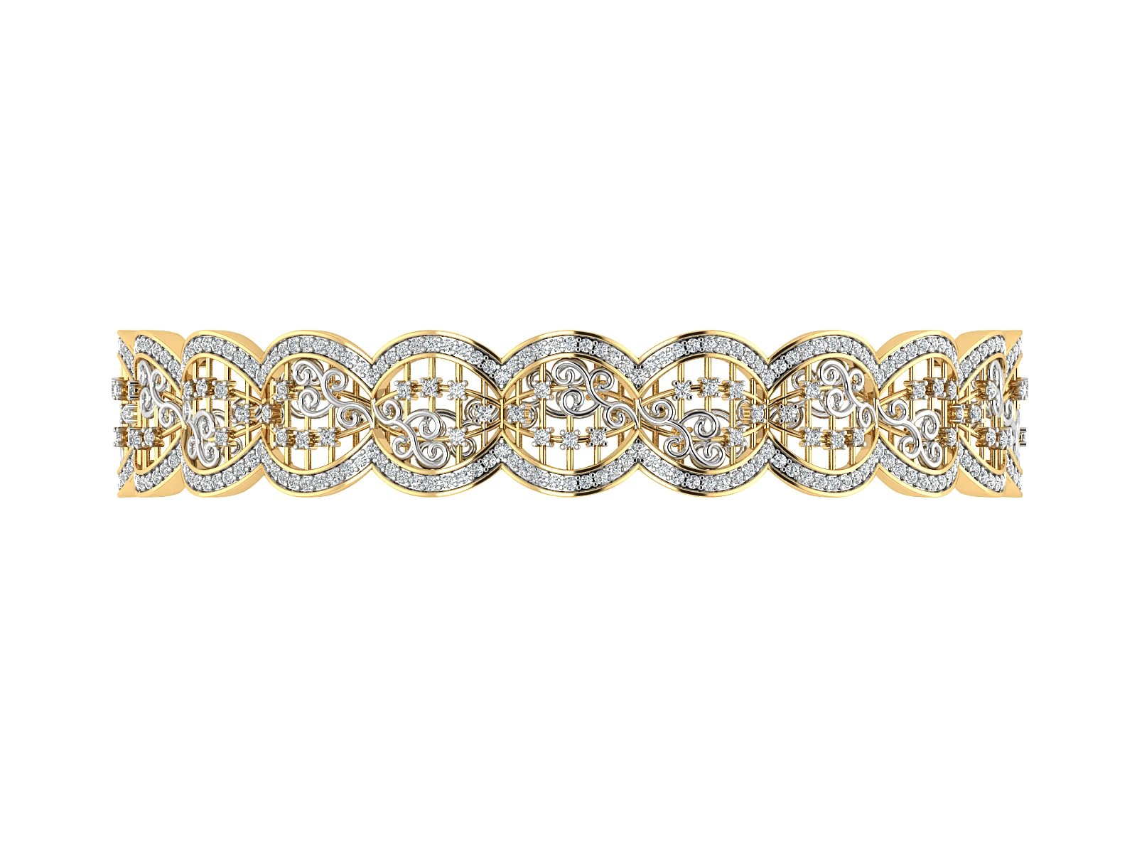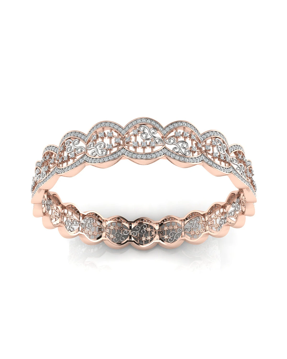 Designed with an infinity-inspired motif, this bangle symbolizes everlasting love and beauty, encrusted with dazzling diamonds.