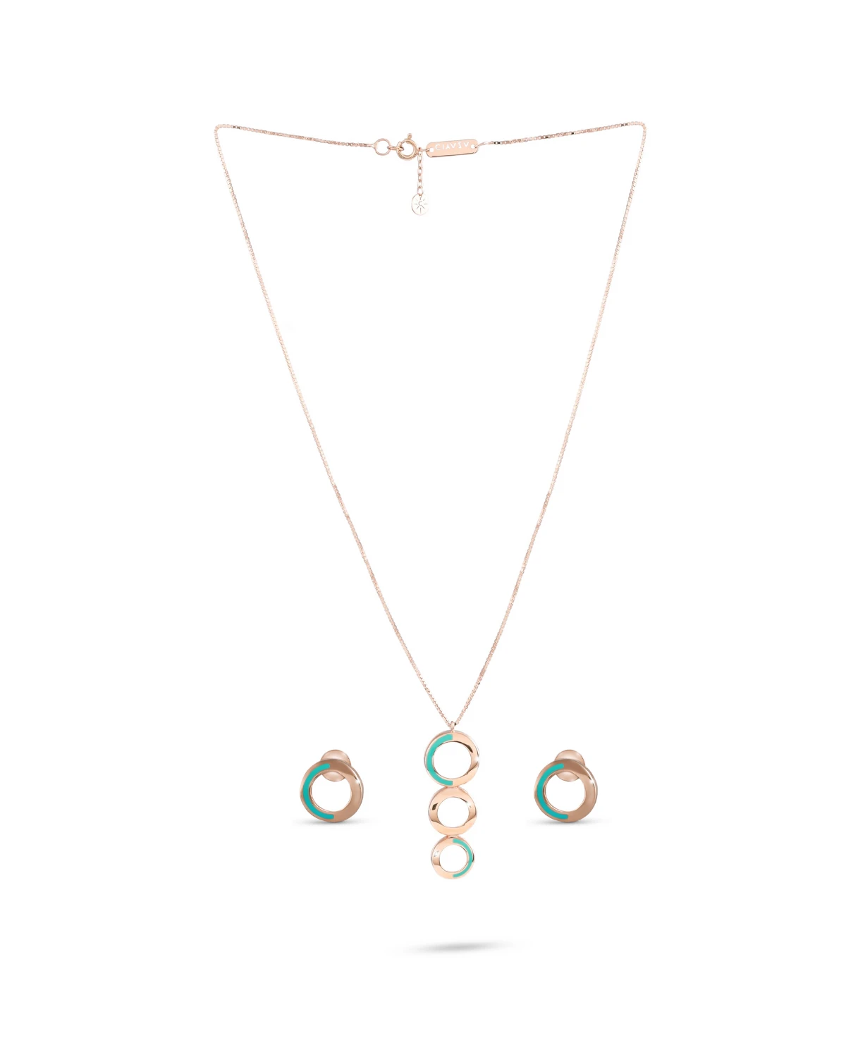 Intricate mandala pendant with geometric detail. Earrings enhance its