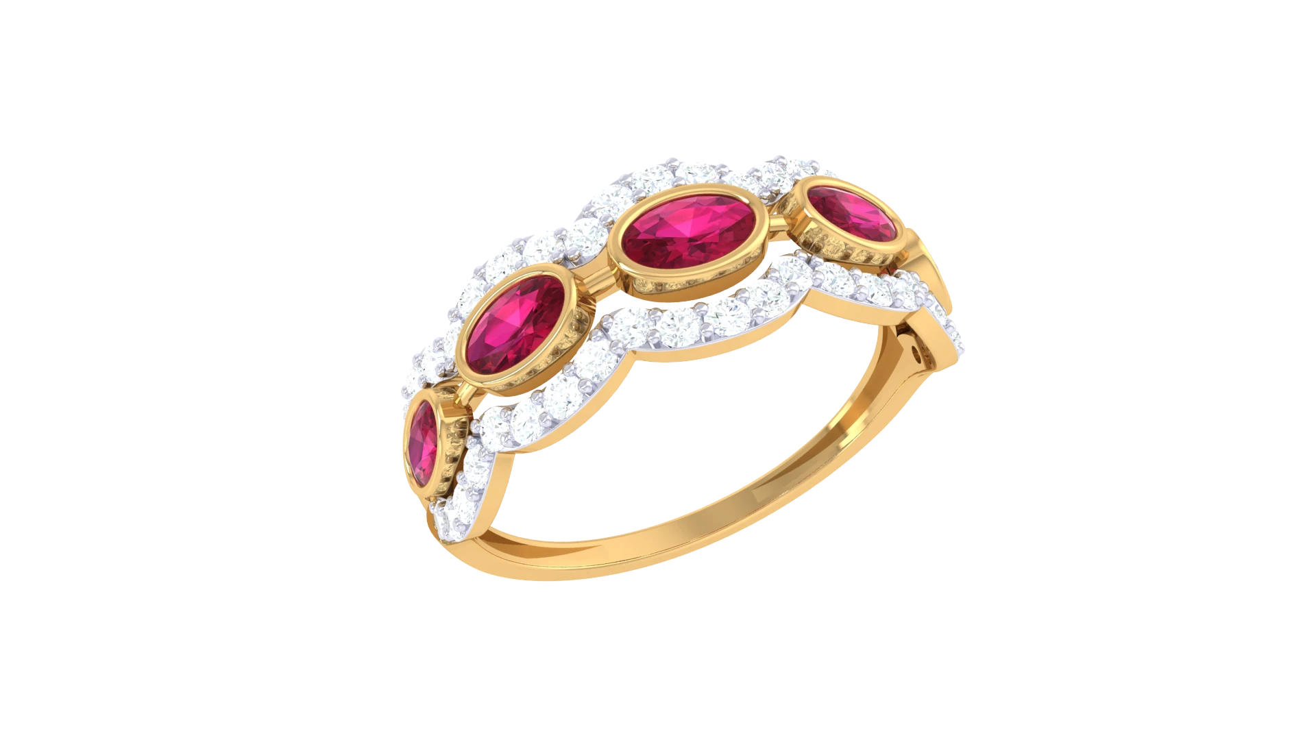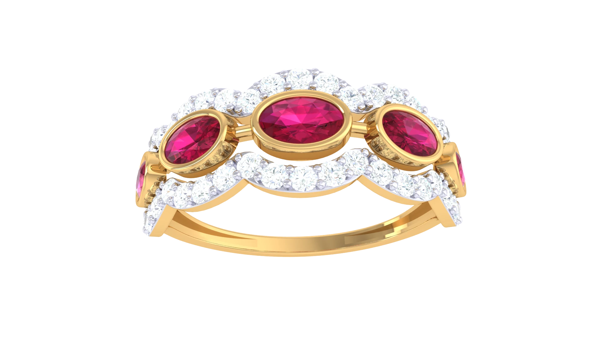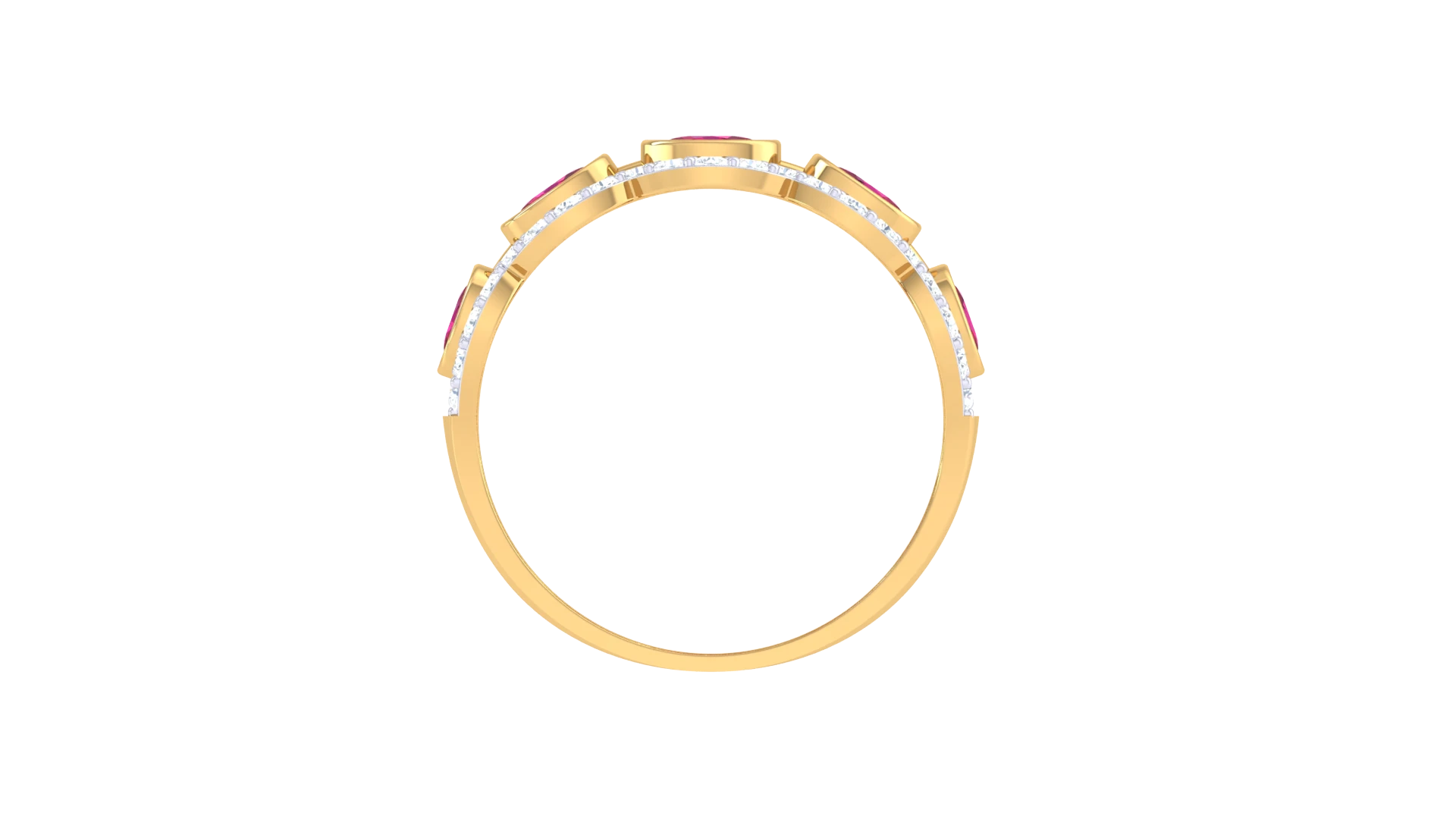 A curved Ring of gold adorned with evenly spaced diamonds