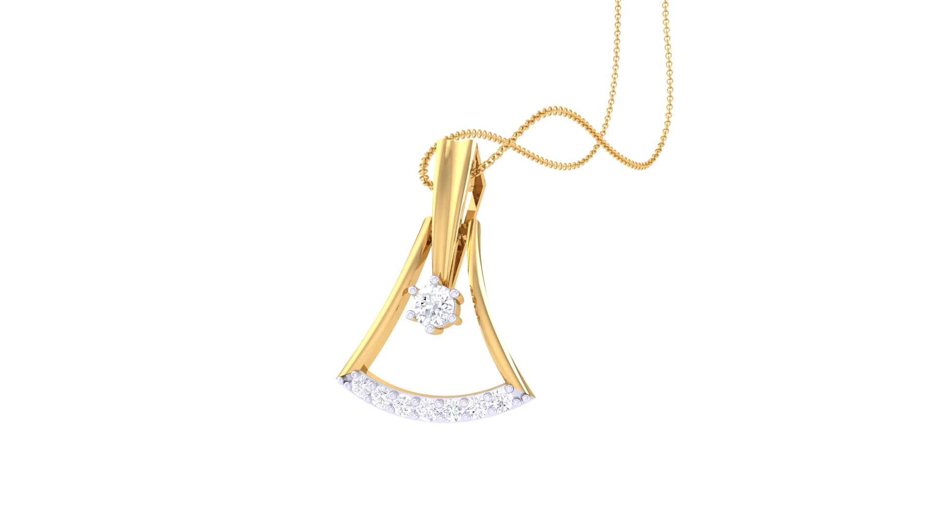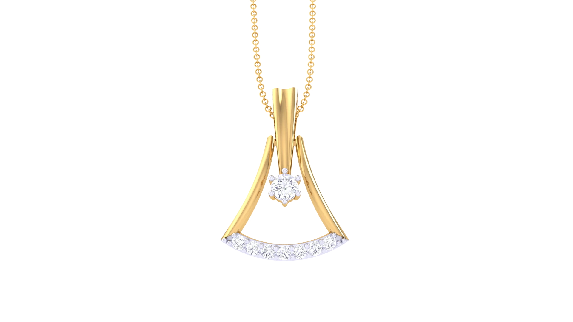 A radiant solitaire diamond in a minimalist gold pendant