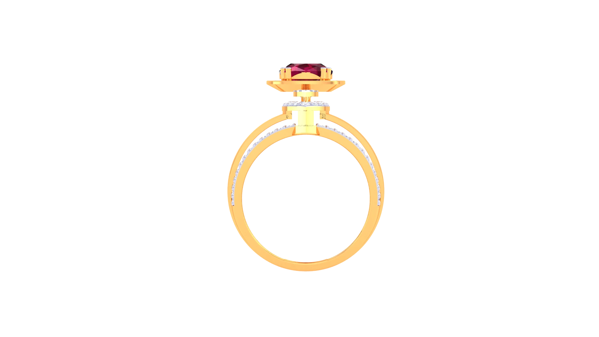 An arched gold Ring accented with shimmering diamonds.