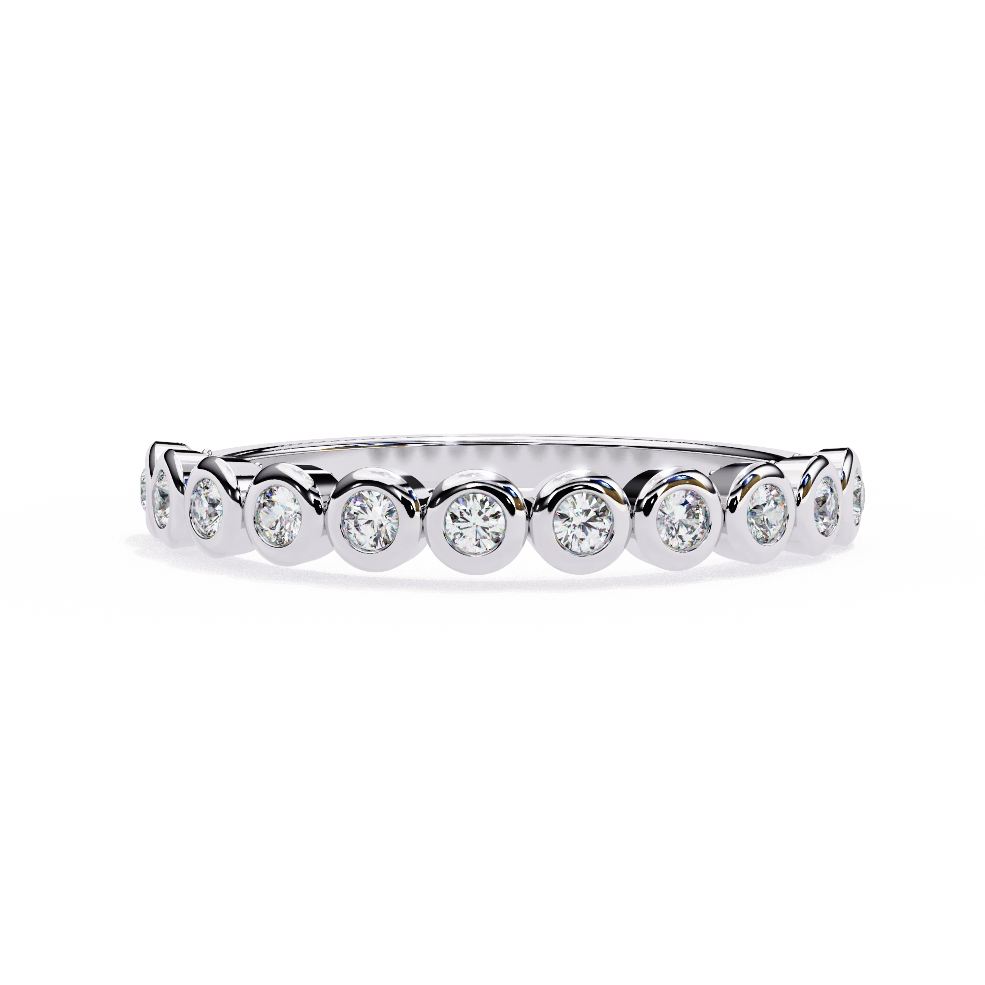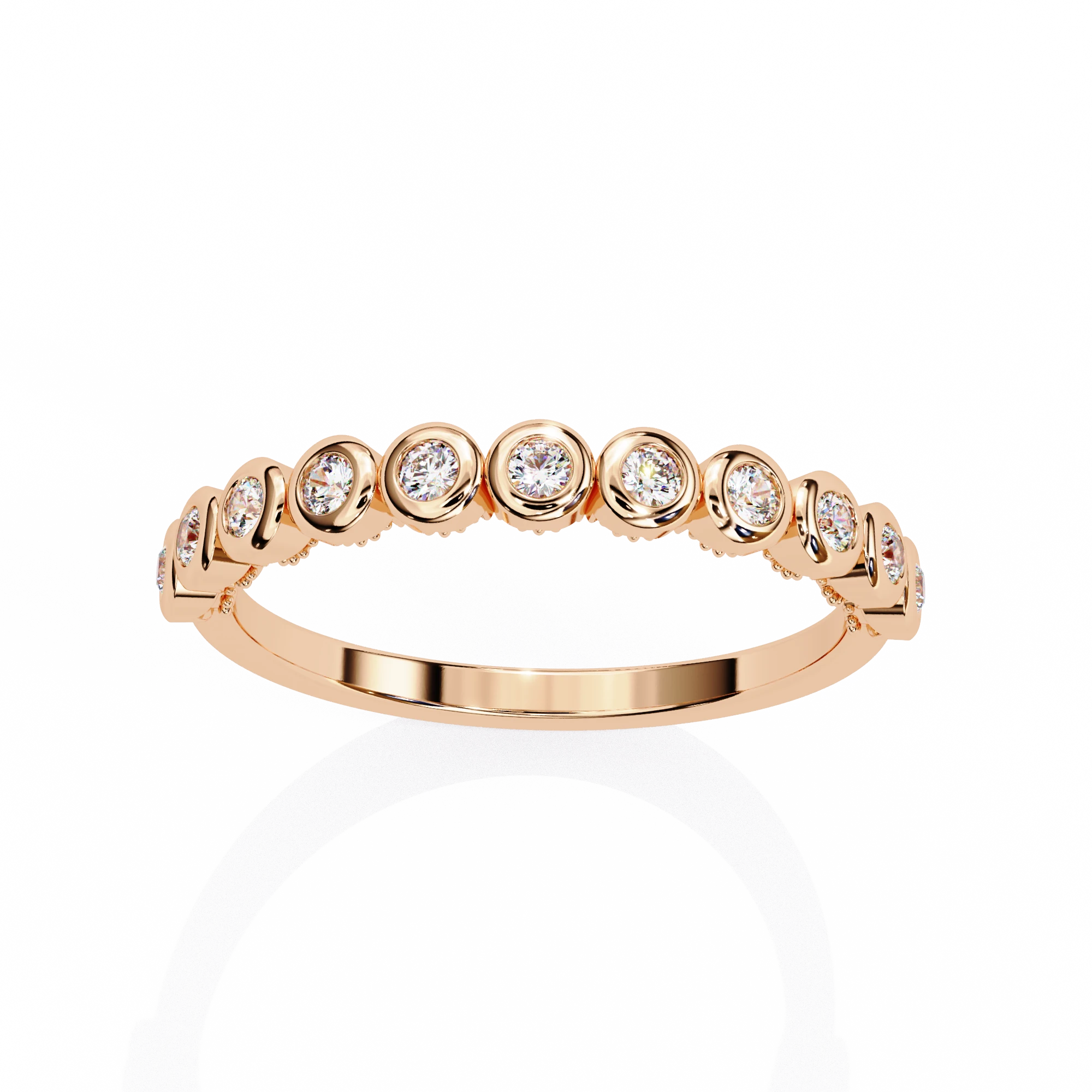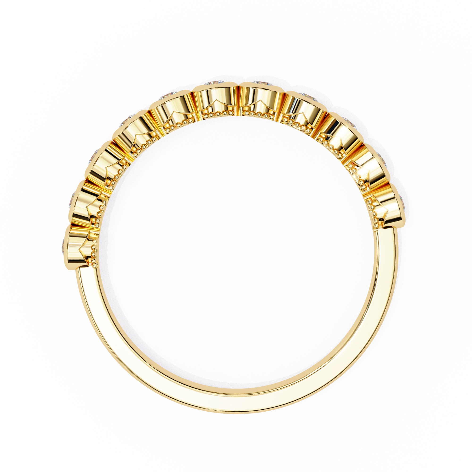 A textured yellow gold band with bezel-set diamonds, exuding individuality and grace.