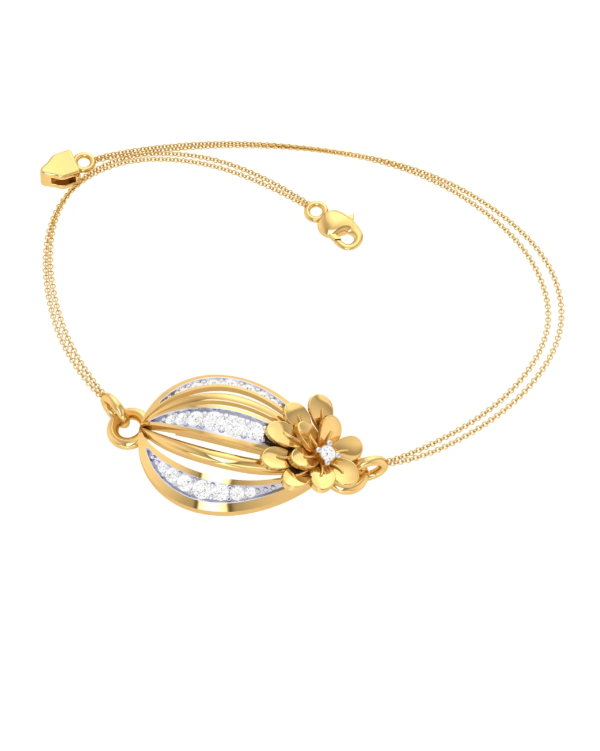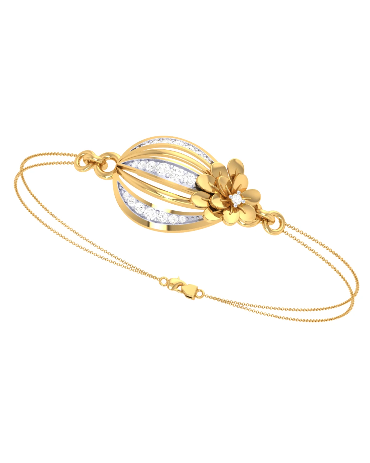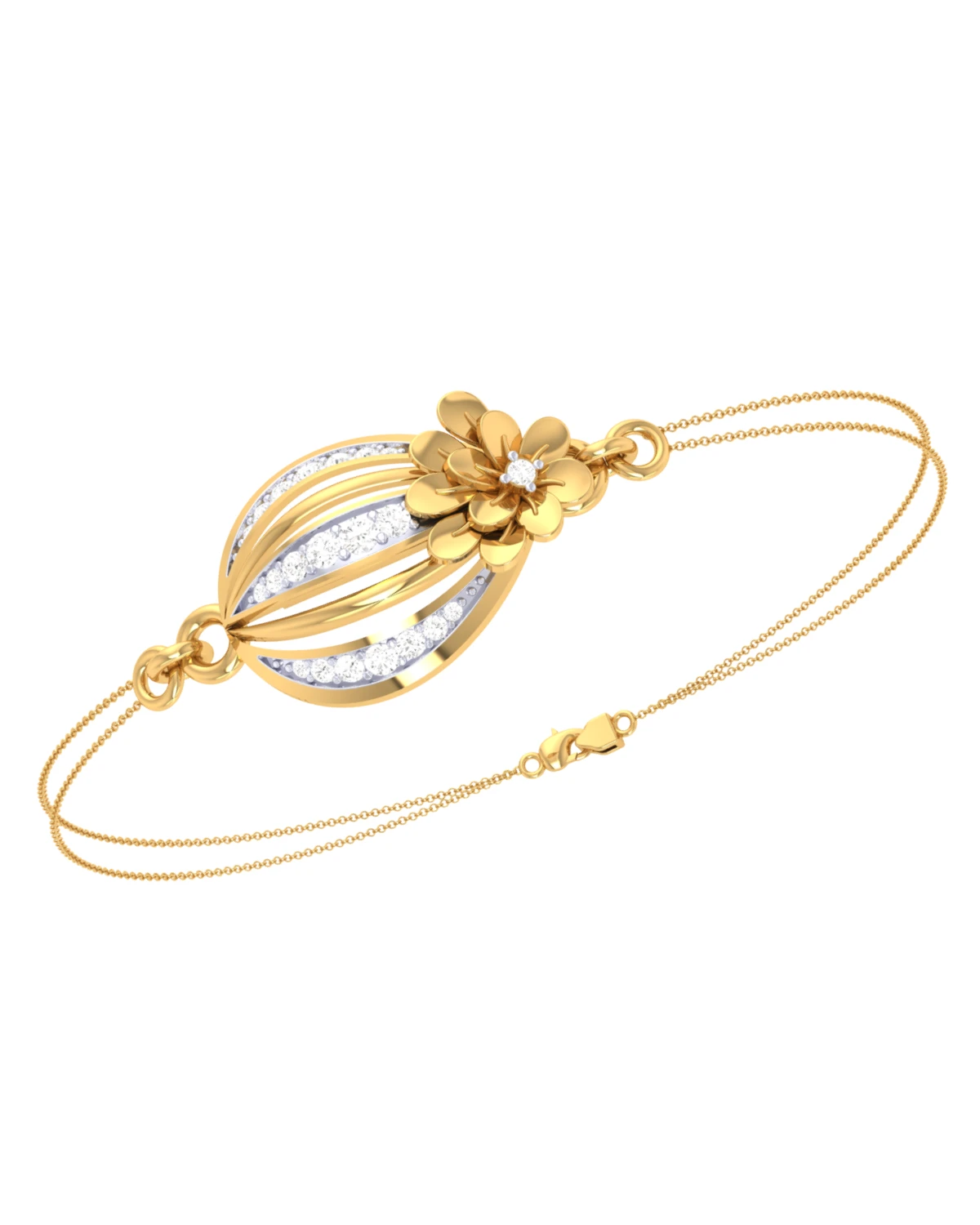 A minimalist yet luxurious 18k gold bracelet, enhanced with diamonds to bring an aura of pure elegance to your wrist.