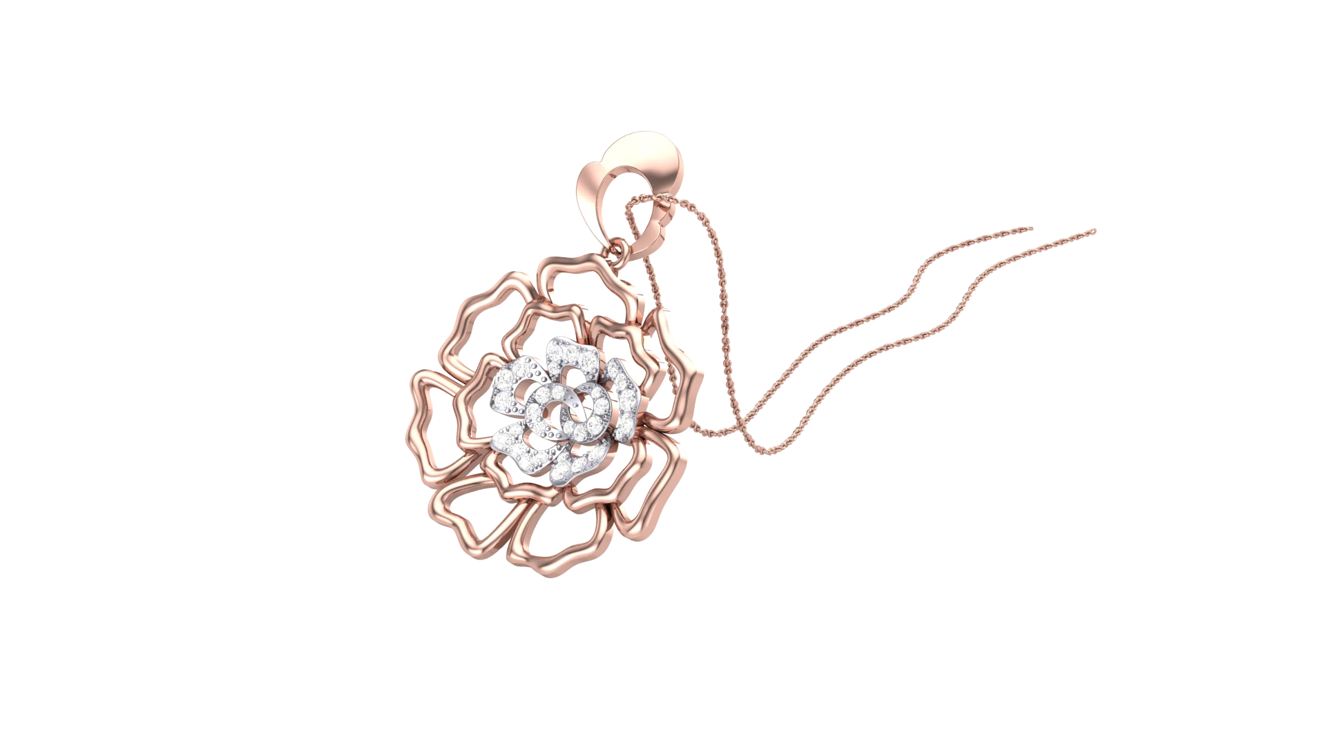 design in gold, with diamonds scattered like dewdrops across the petals,