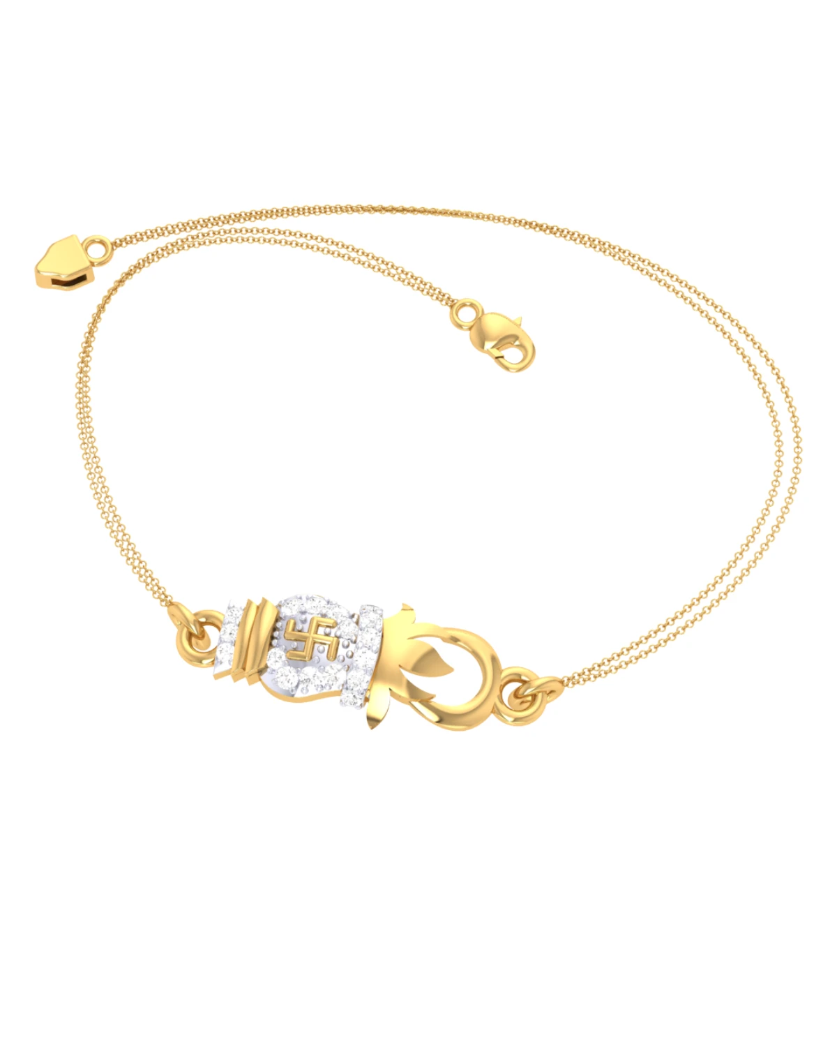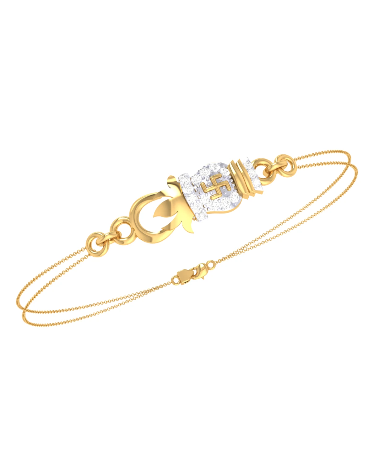 A delicate 18k gold bracelet adorned with shimmering diamonds, offering a soft, glowing elegance perfect for any occasion.