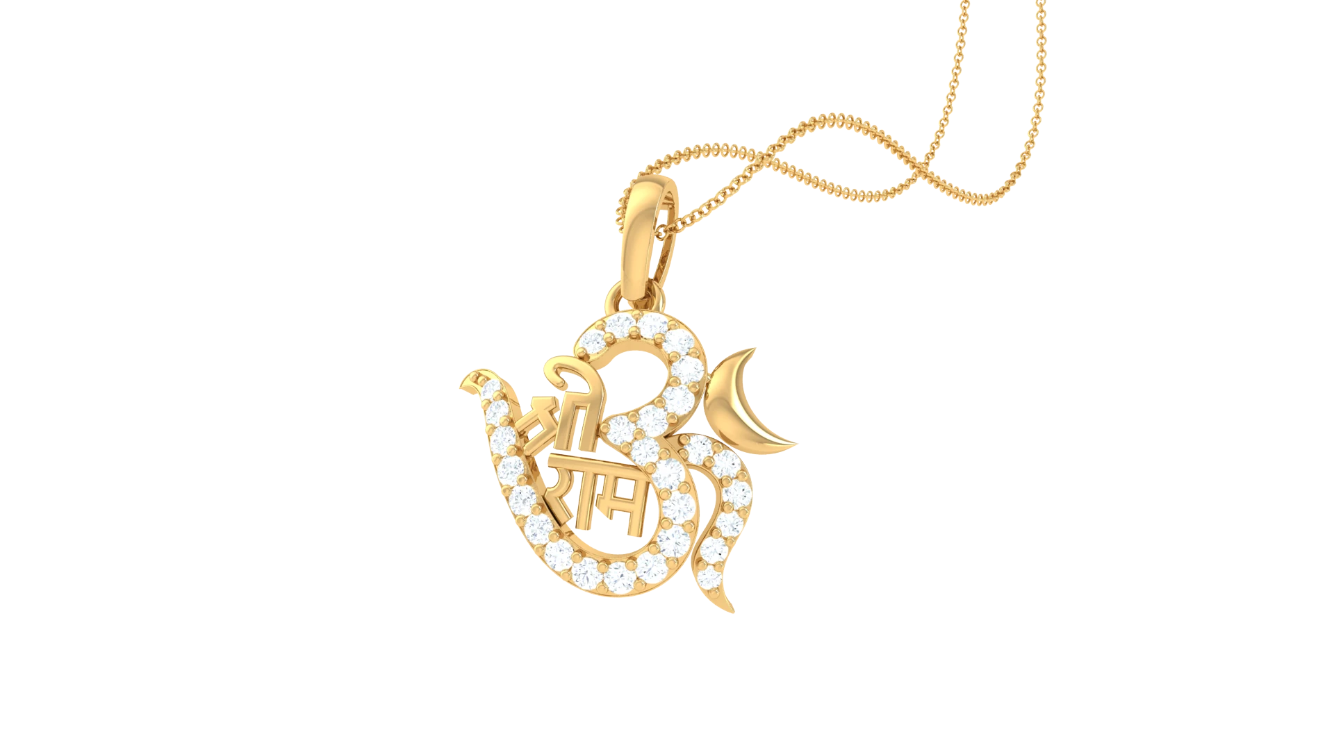 A sleek and elegant gold pendant featuring the name "Ram Chandra" along with intricate diamond accents. This piece represents the purity, righteousness, and virtue that Lord Ram embodies, perfect for anyone seeking to lead a life of moral integrity and devotion.( Chain not included in This product )