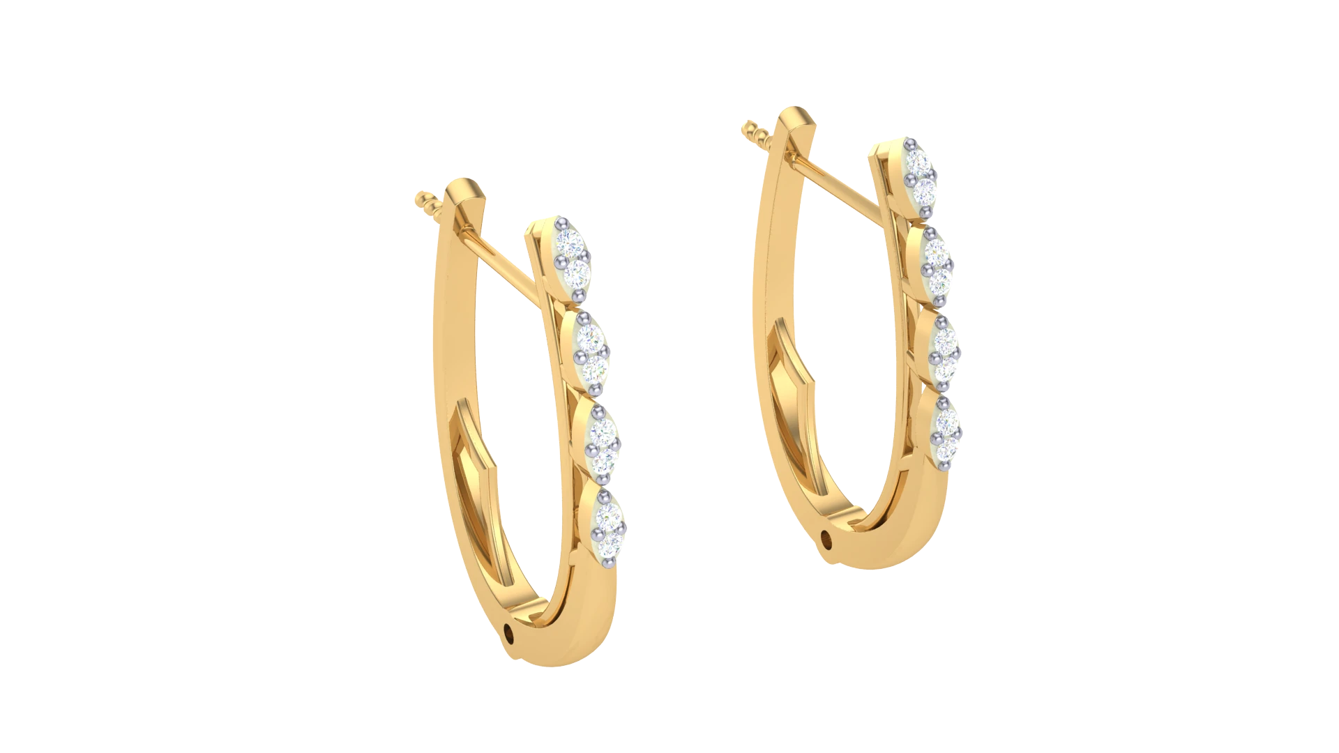 18K gold hoops with diamonds set in a royal pattern, designed to elevate any occasion with their luxurious and majestic appearance.