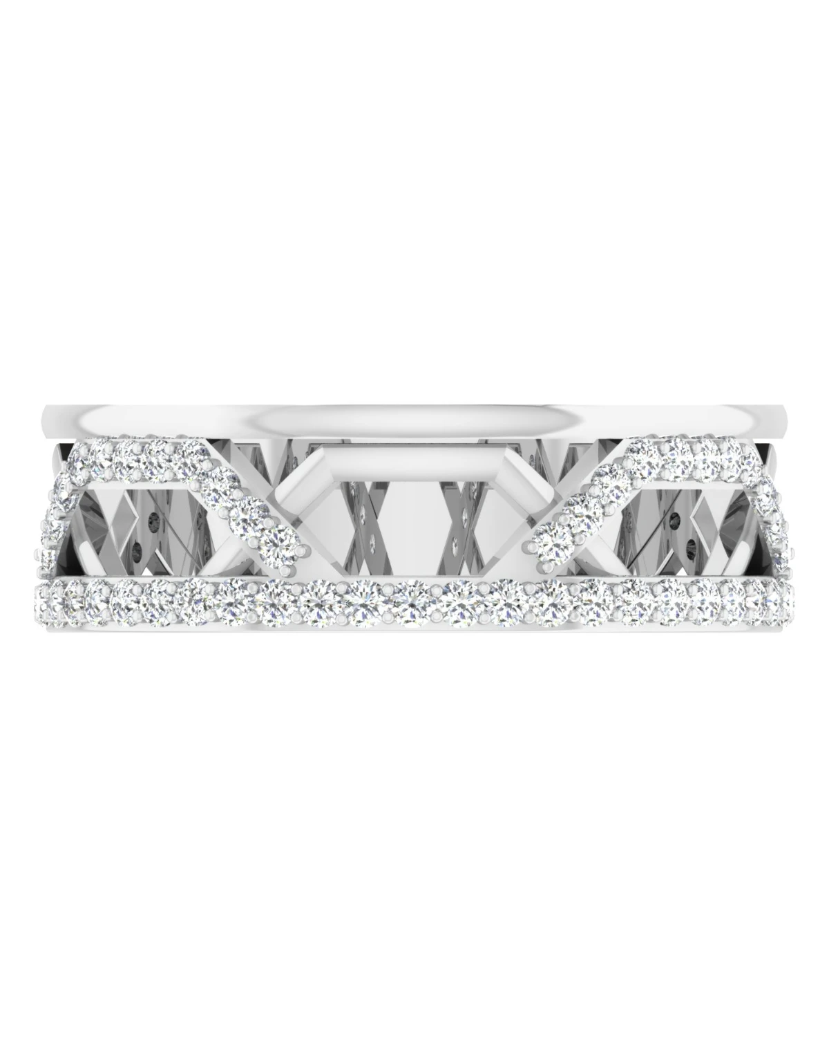 A radiant 18K white gold band with diamonds delicately arranged to