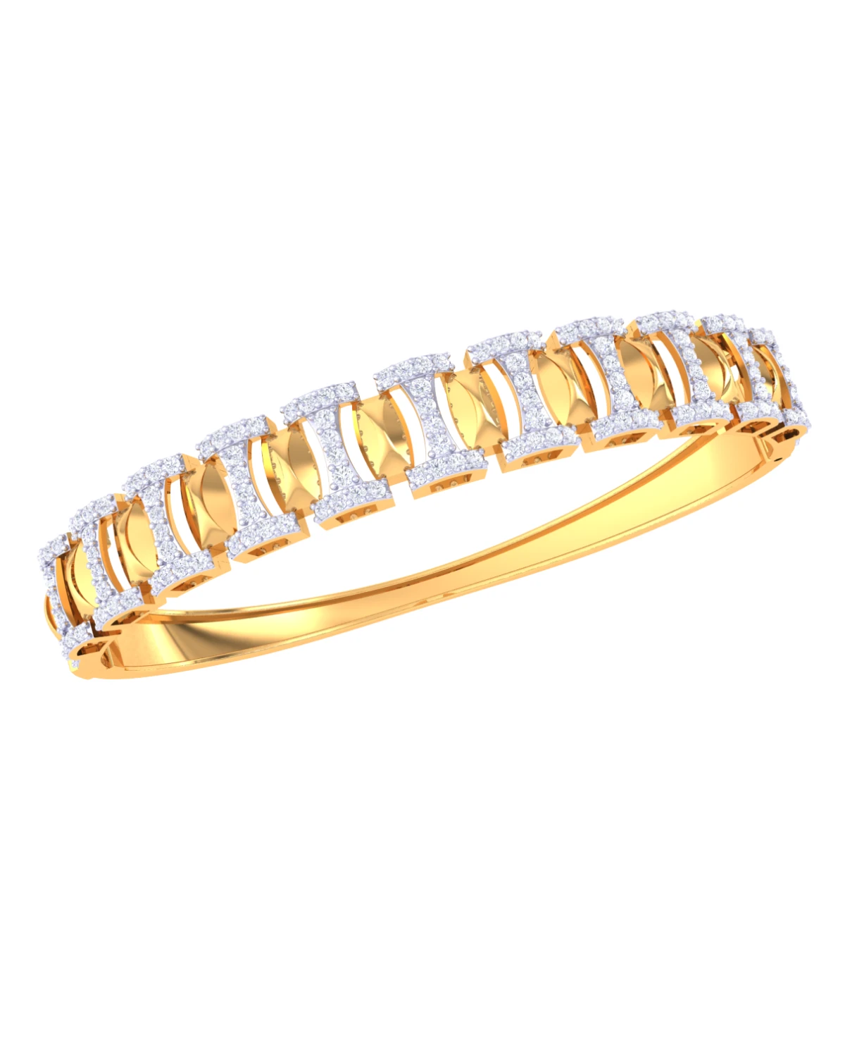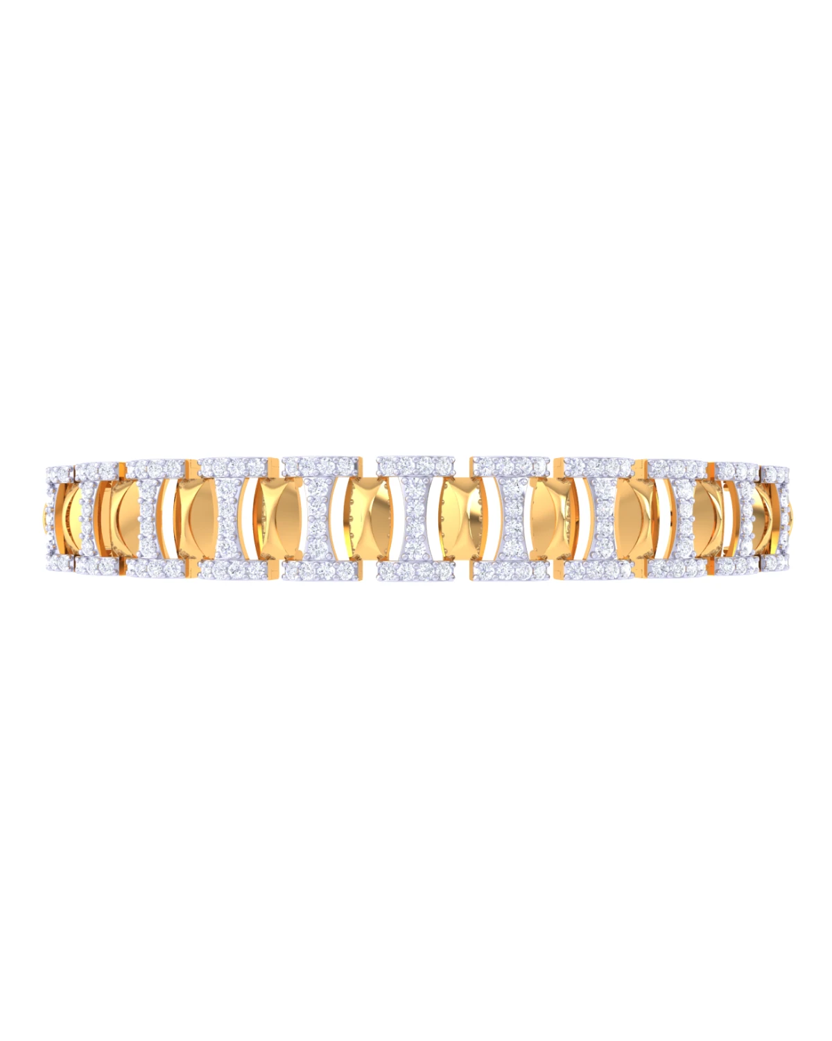 Gold arcs accented with diamonds create a dynamic and modern