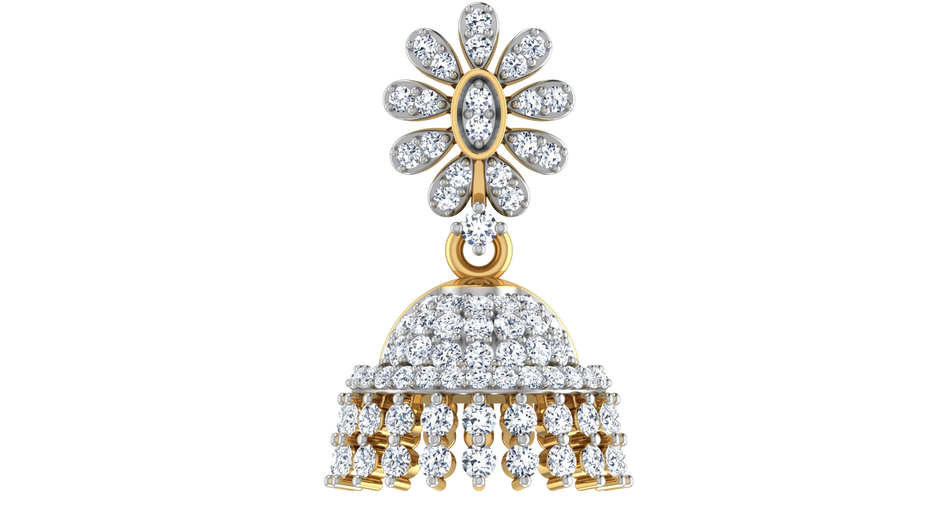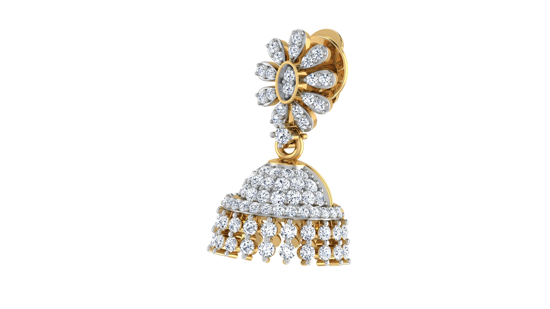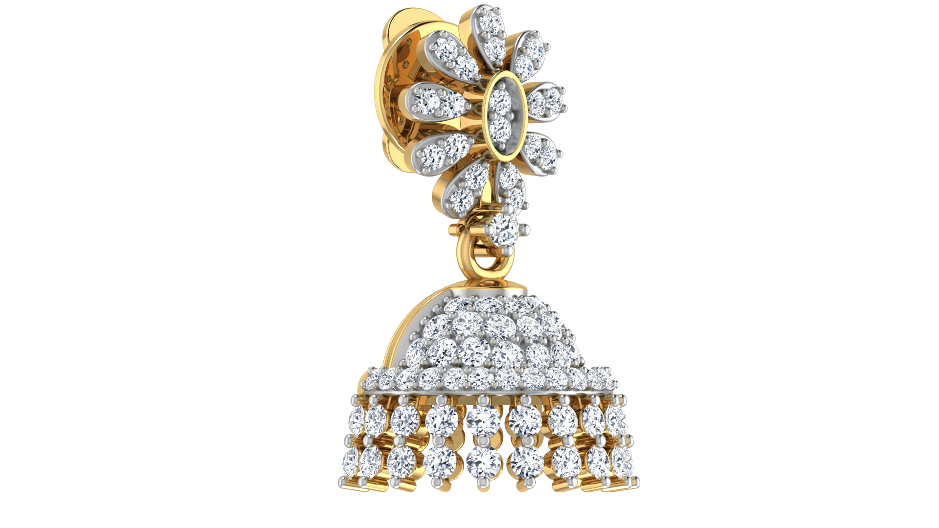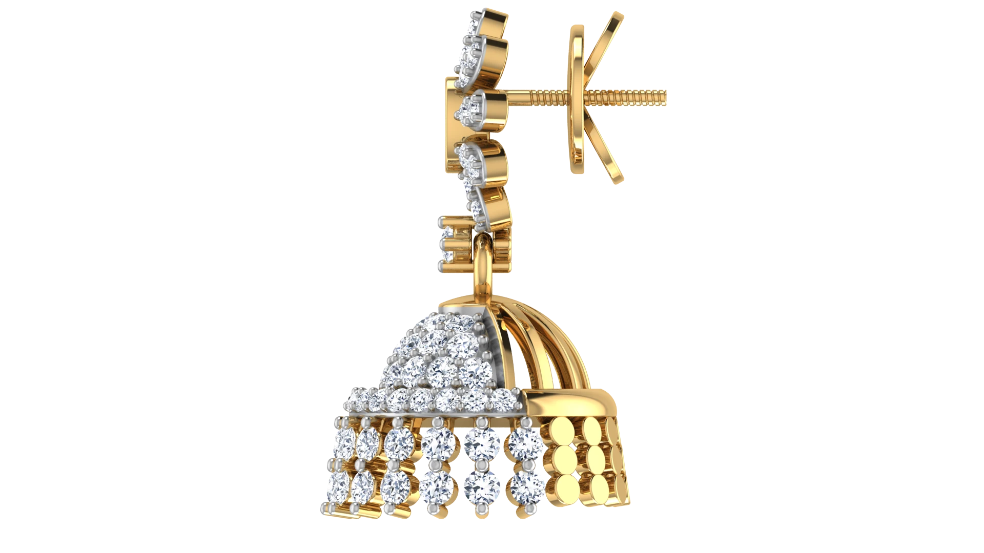 Classic gold jhumkas with diamonds arranged in an elegant design.