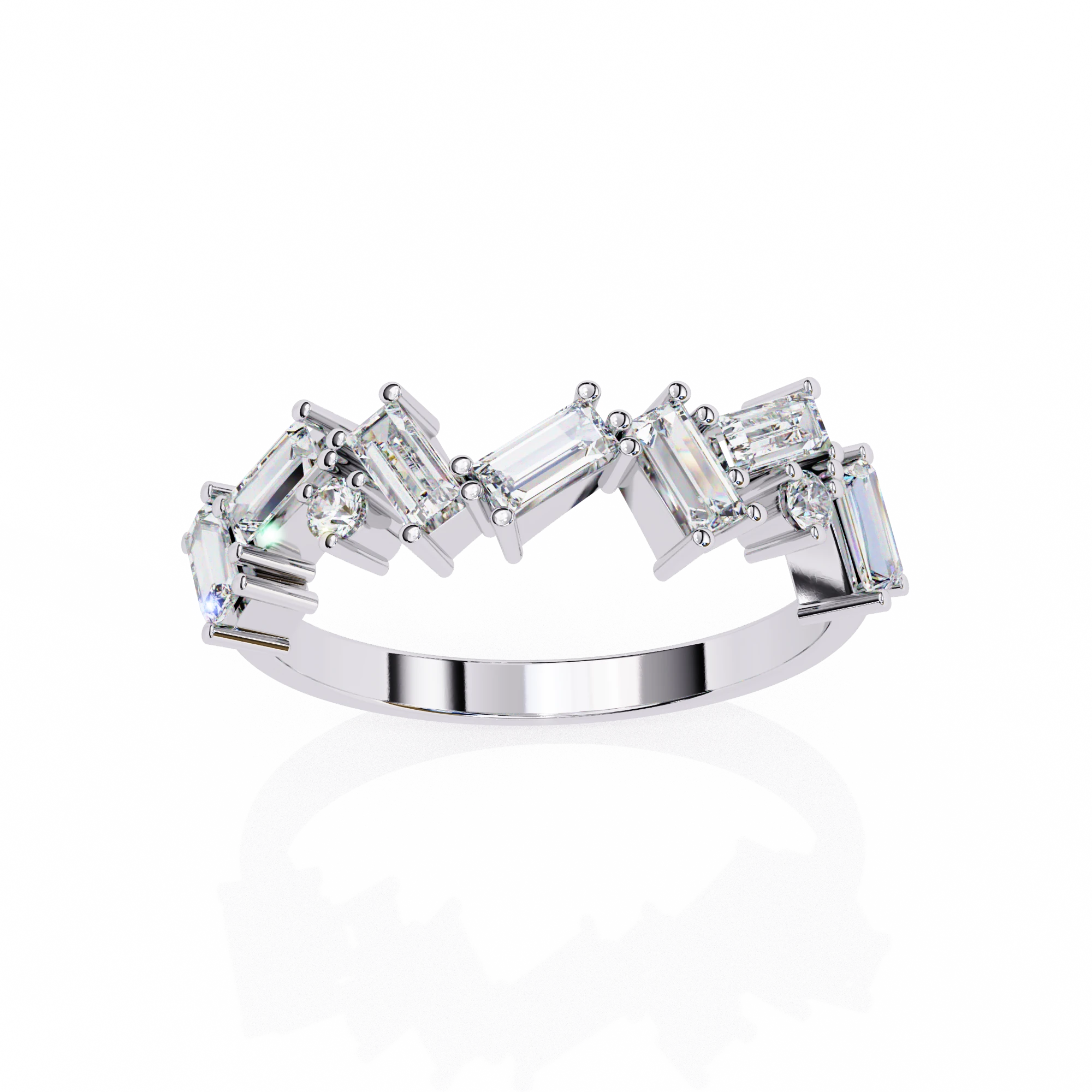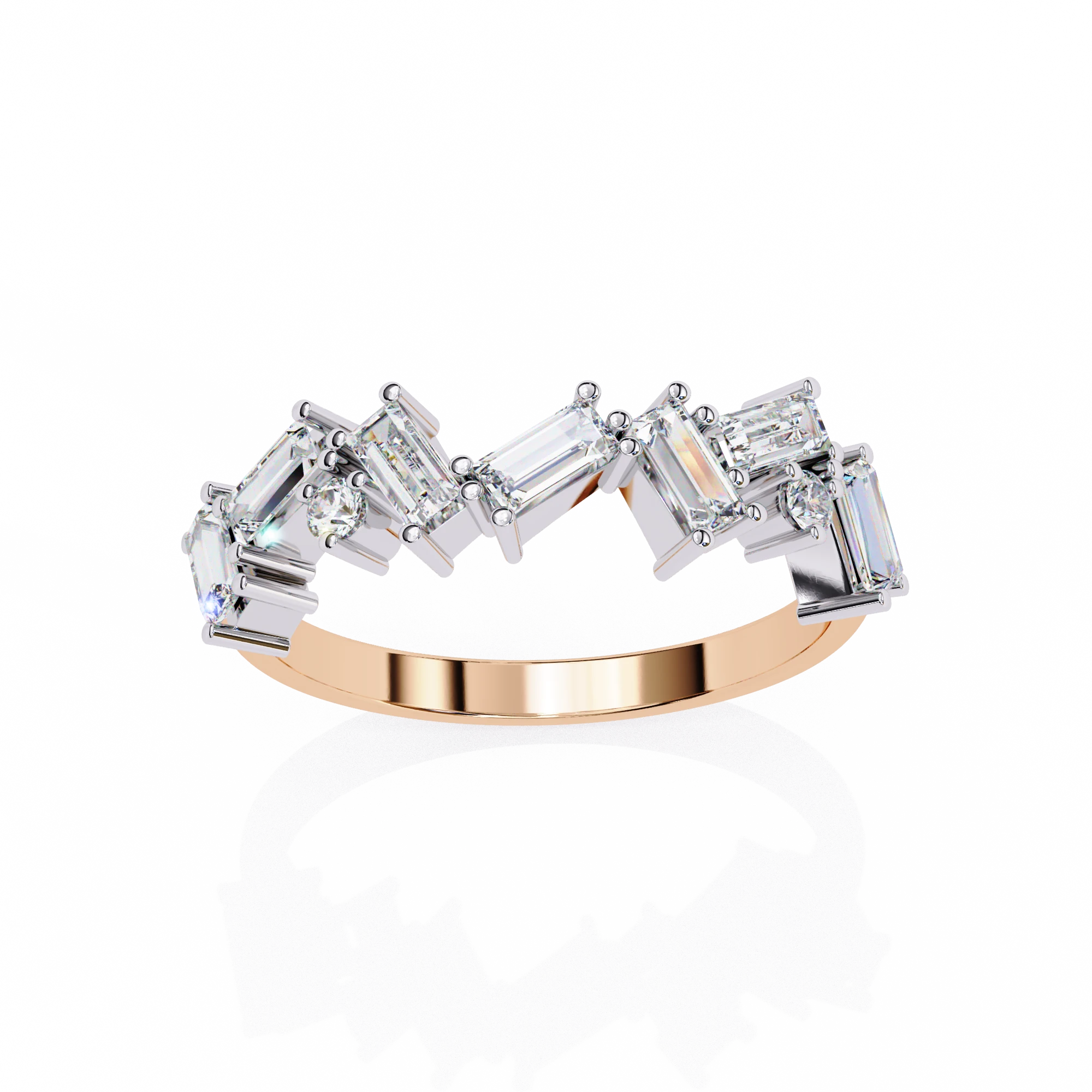 baguette and round diamonds for a unique, radiant design.