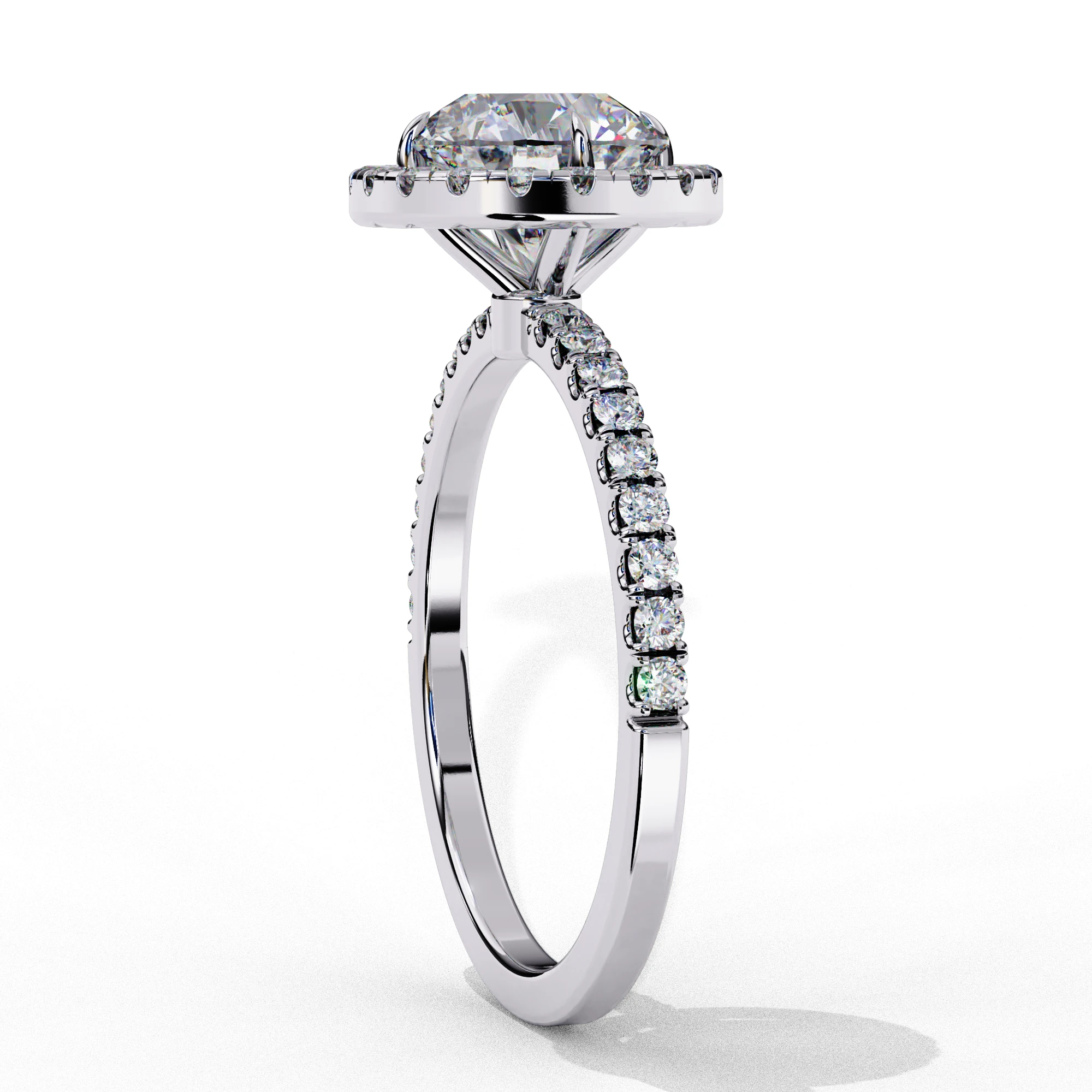 A solitaire ring with a hidden halo that adds subtle shimmer to the design.
