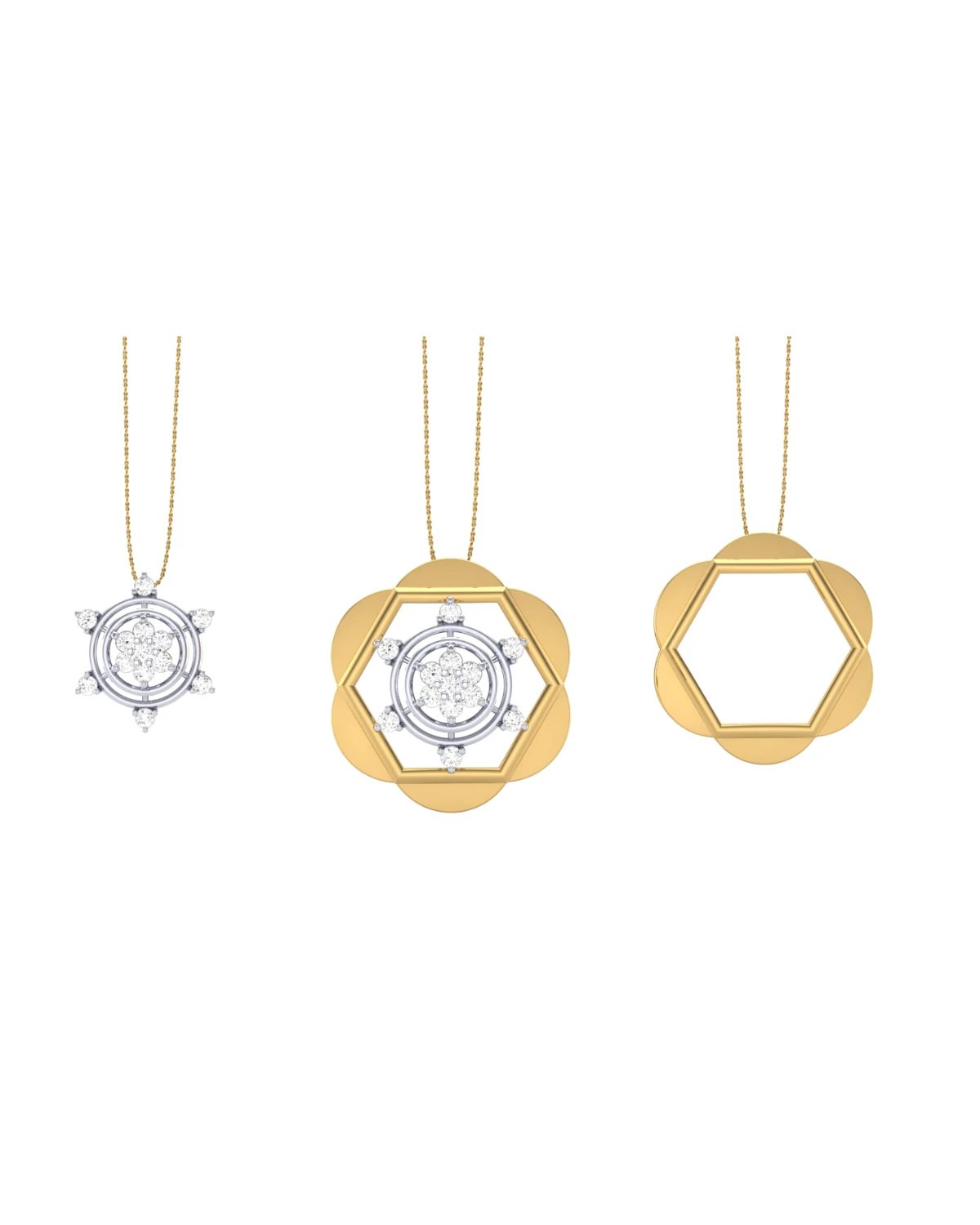 A flexible pendant design that can be worn as a solitary diamond charm, a cascading multi-pendant piece, or stacked with a sleek gold chain for a modern vibe.( Chain not included in This product )