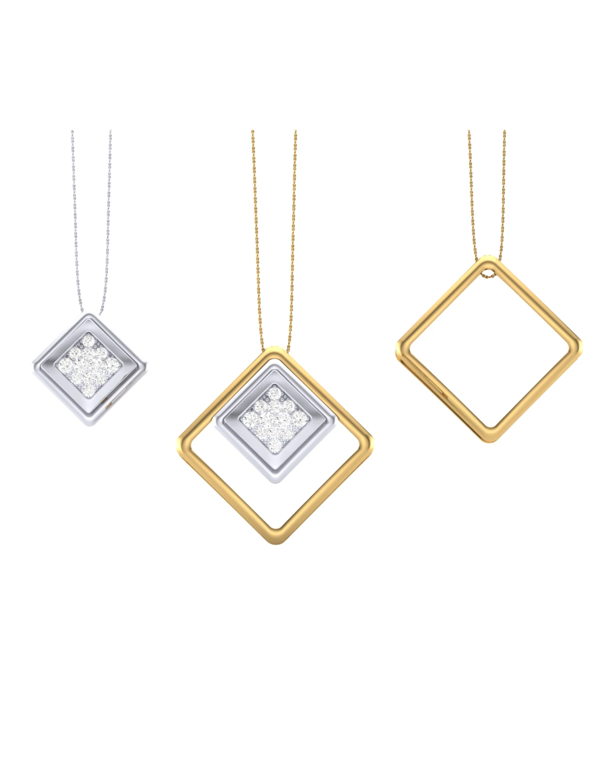 This pendant allows you to wear it in three ways: as a single diamond triangle, as two triangles with a gold link, or stacked triangles with diamonds embedded for extra sparkle.( Chain not included in This product )