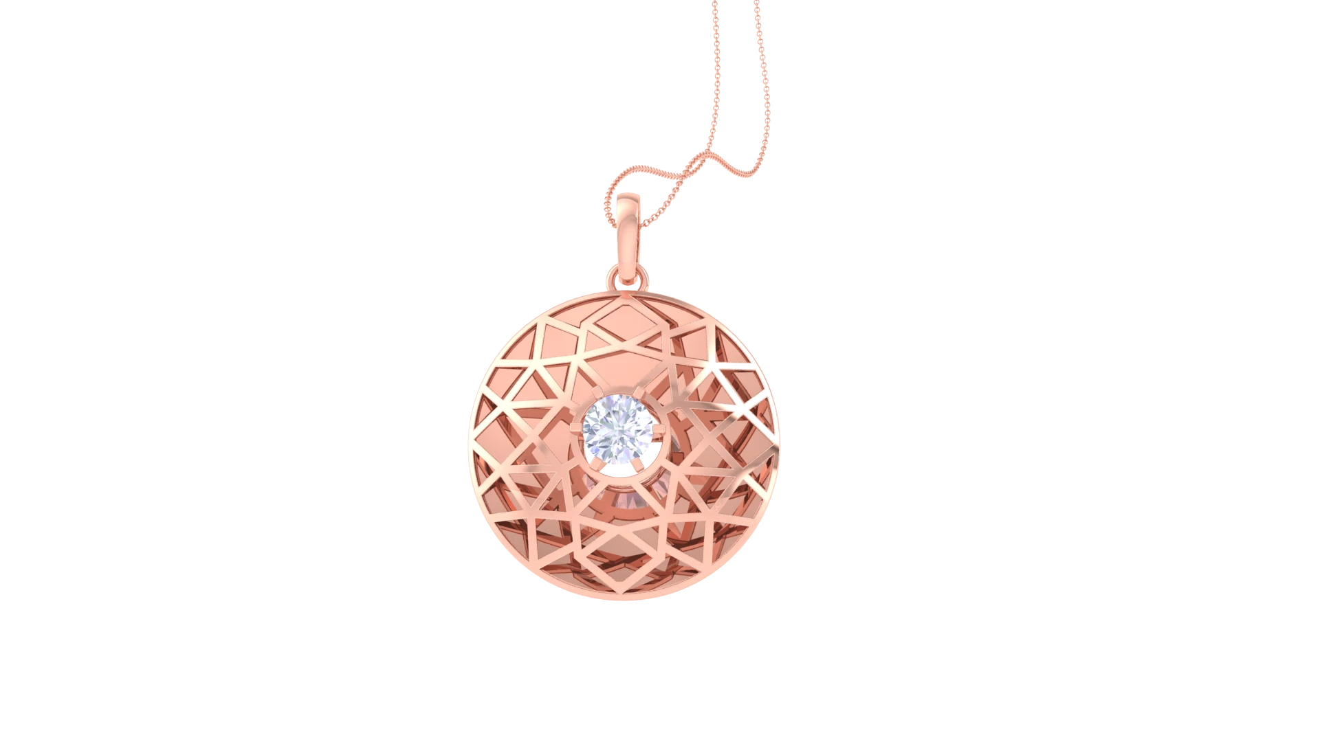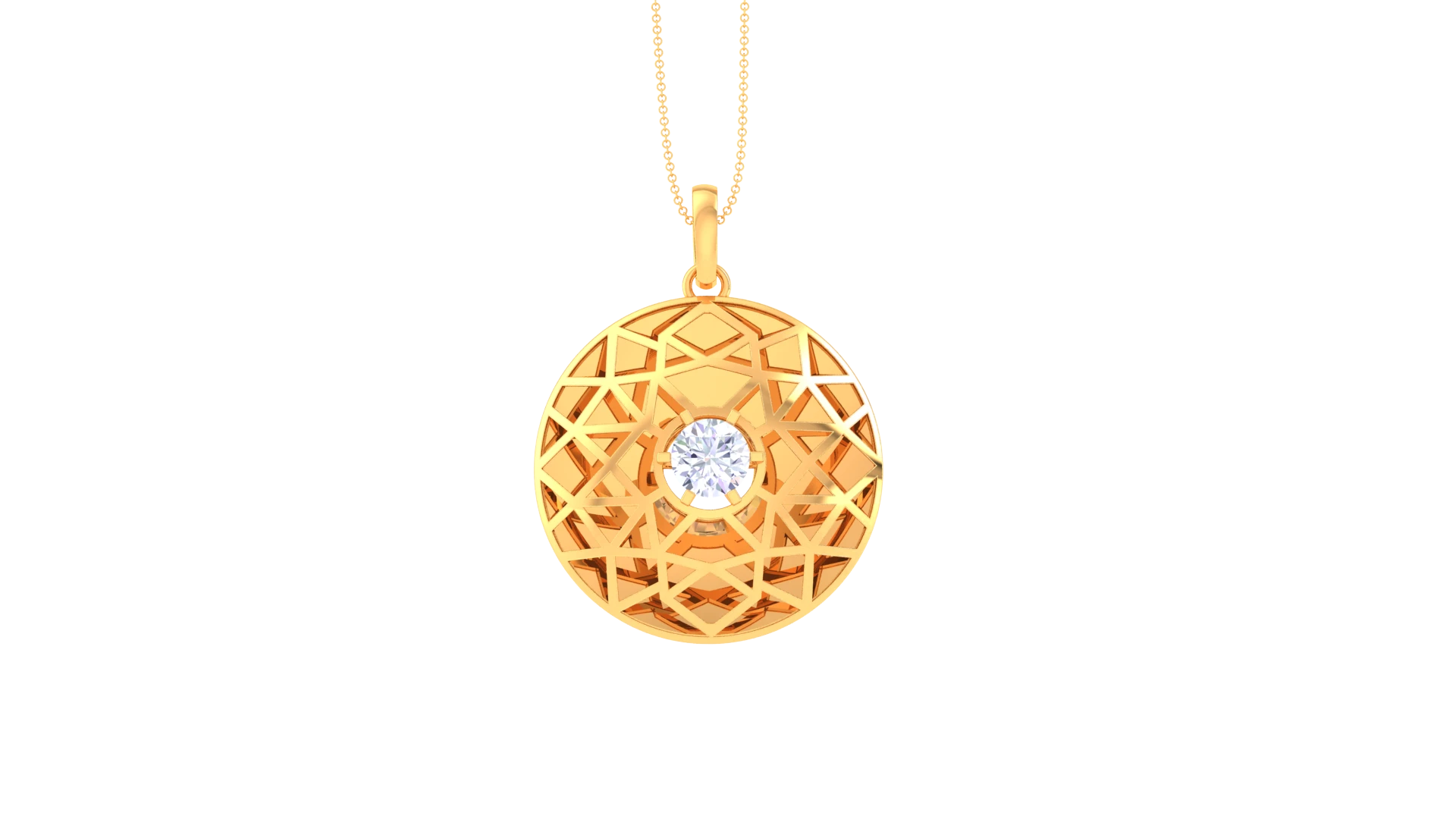 A delicate gold pendant with a single diamond that radiates a soft,