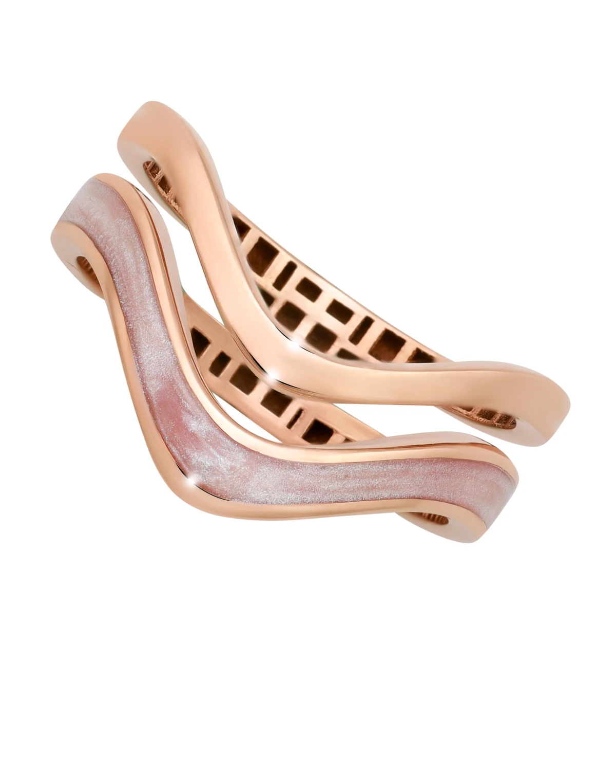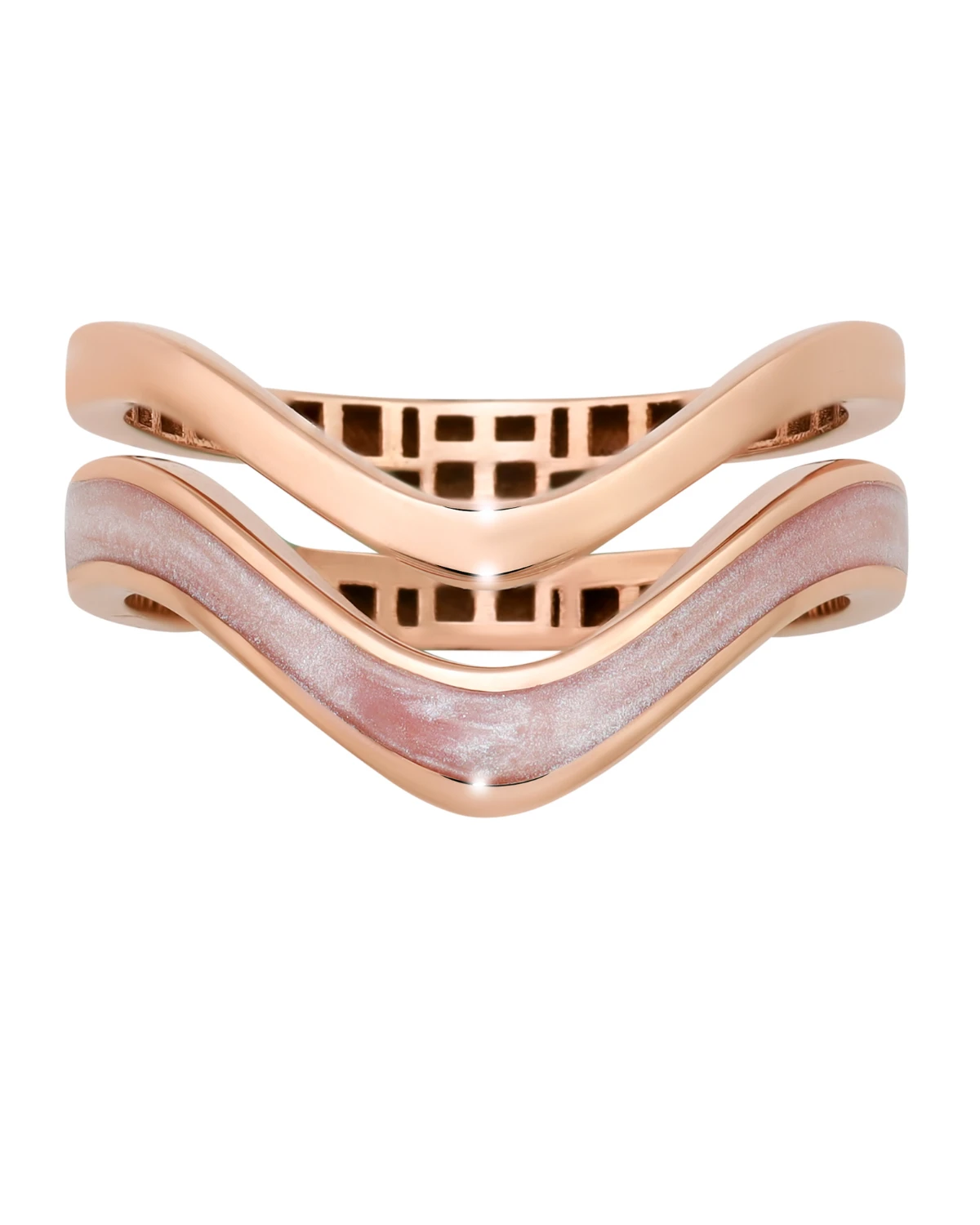 A design where gold band are set harmoniously like wave, symbolizing balance and unity in love.