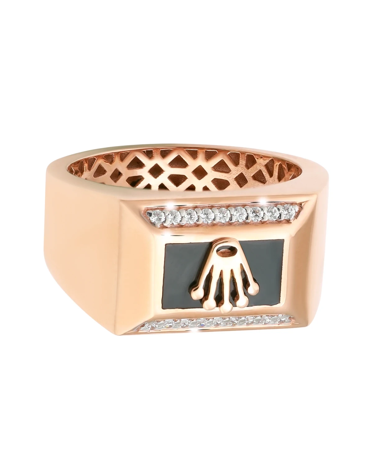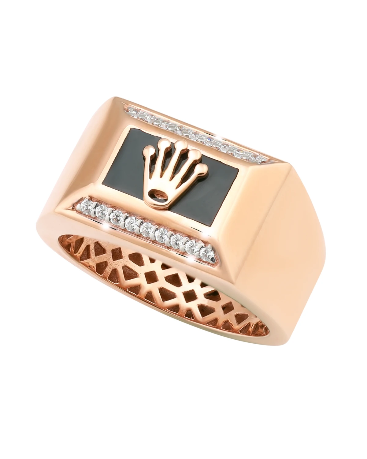 With a fire-like sparkle in the CZ and a warm gold base, this ring ignites bold style.
