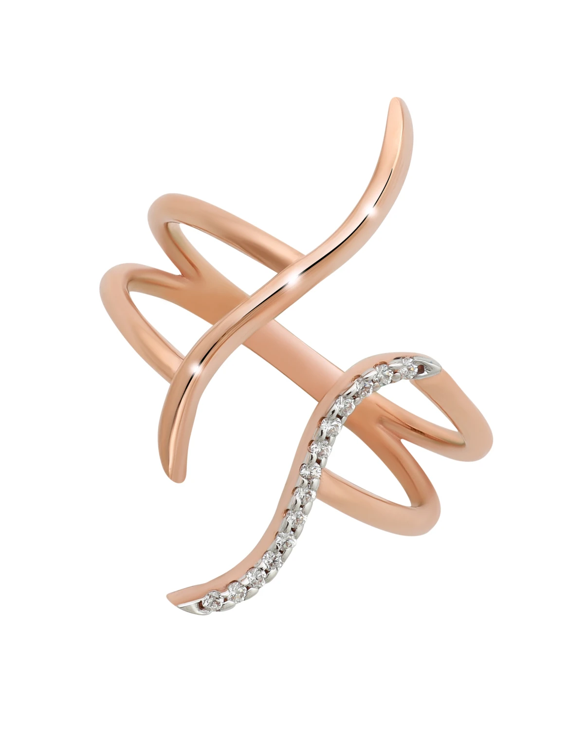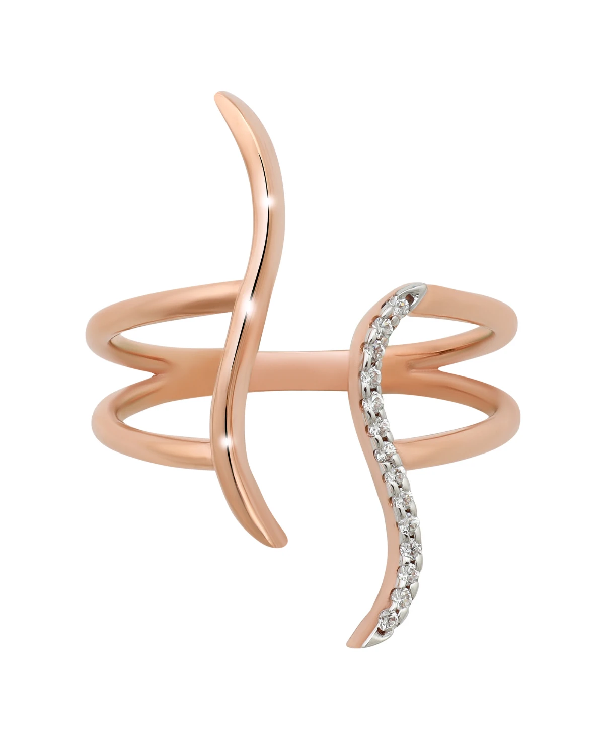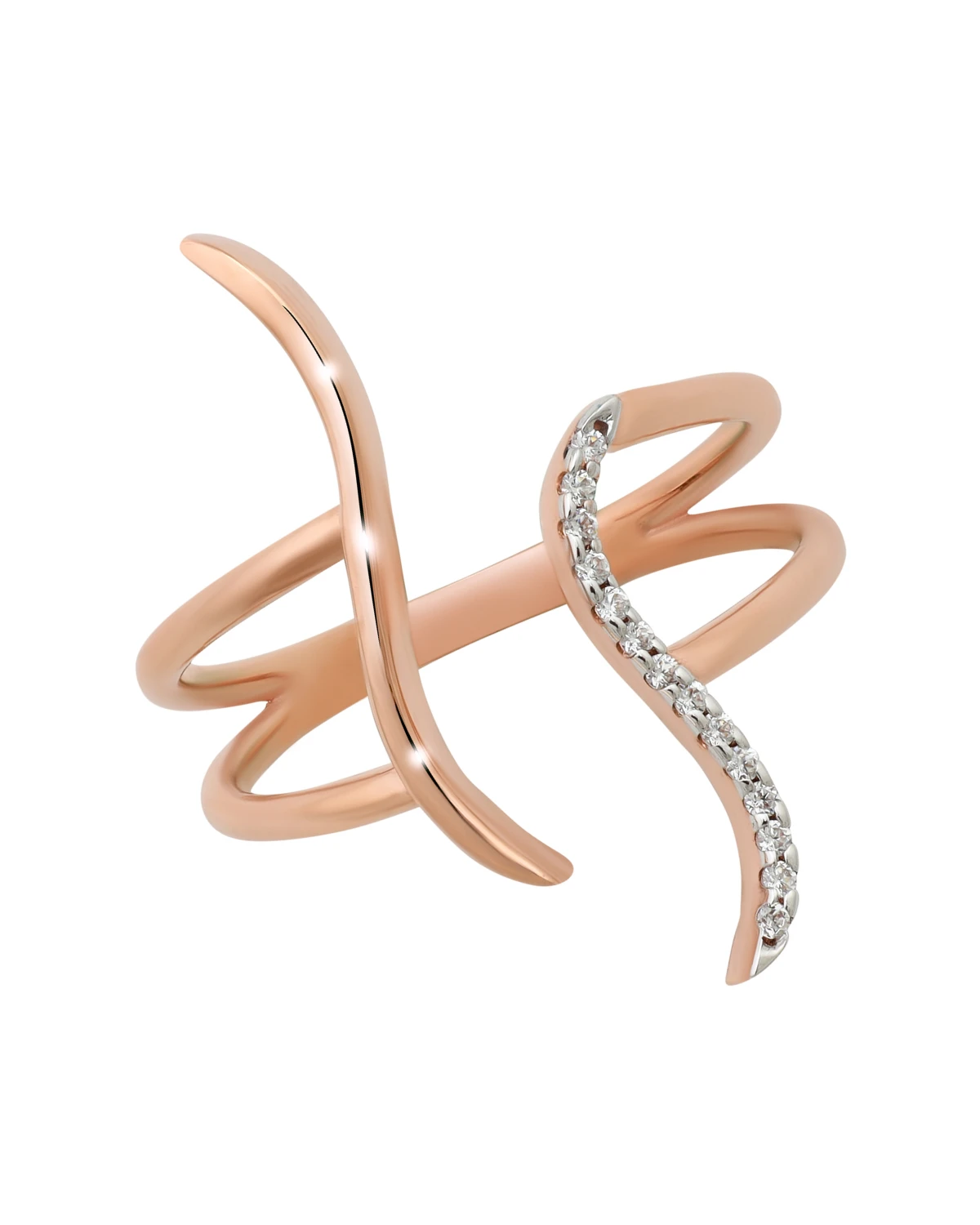 A gold band with cz diamonds arranged like stars, dancing around your finger in